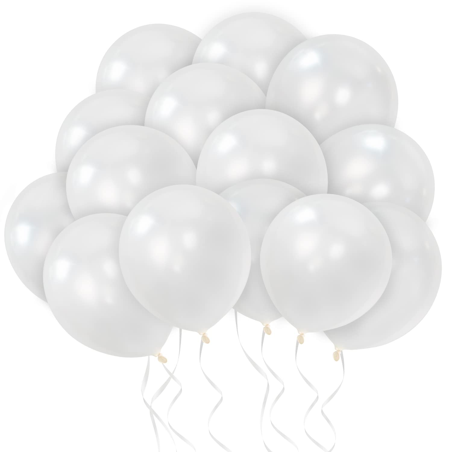 - PACKAGE:50pcs of 12 White shiny pearlized balloons.