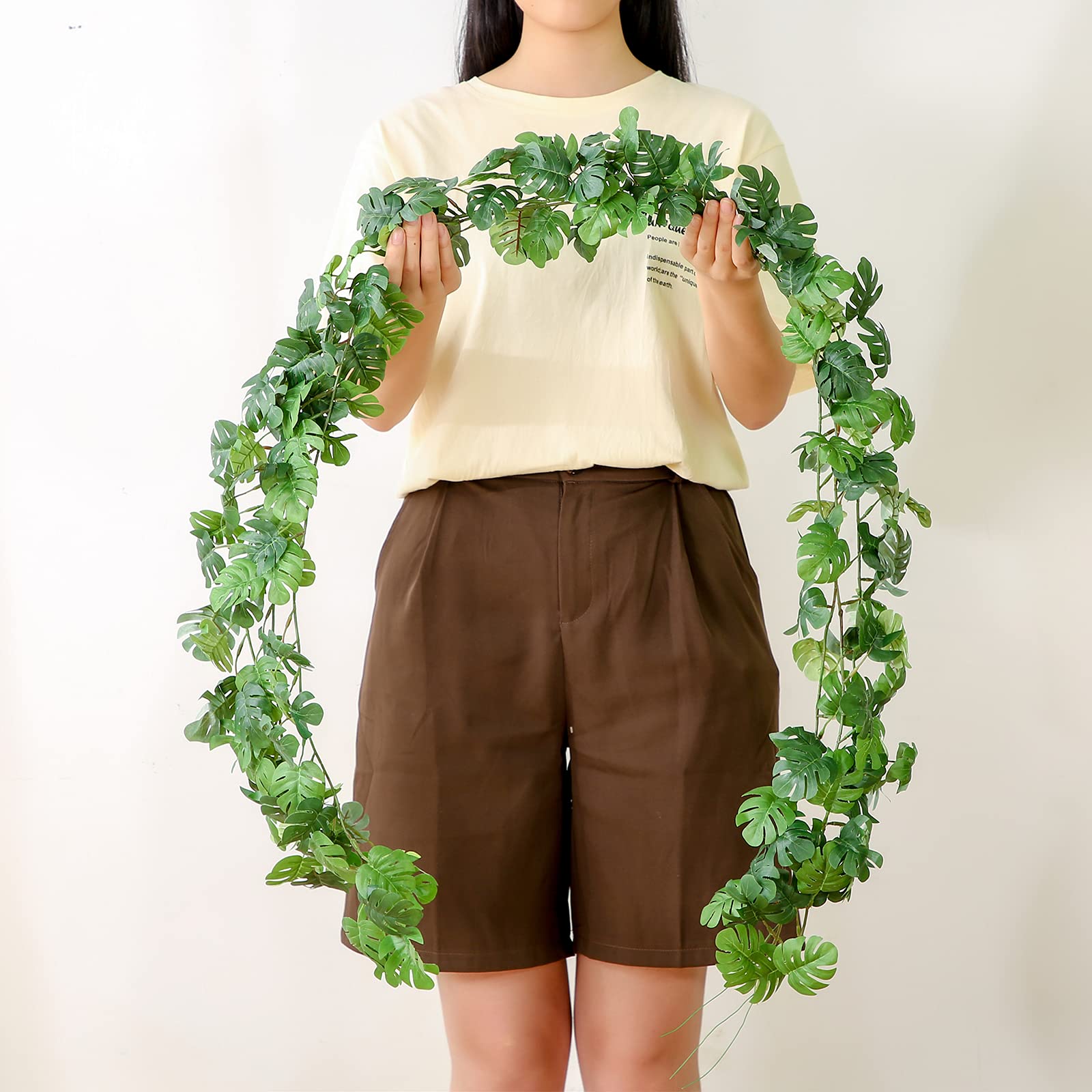 - Original Artificial Plants & Greenery – 3 Pcs Artificial Monstera Leaf Vines, 5.7Ft Faux Tropical Jungle Hanging Plants Palm Safari Leaves, Faux Greenery Vines for Garden Porch Patio Beach Party Indoor Outdoor Décor by MBKET