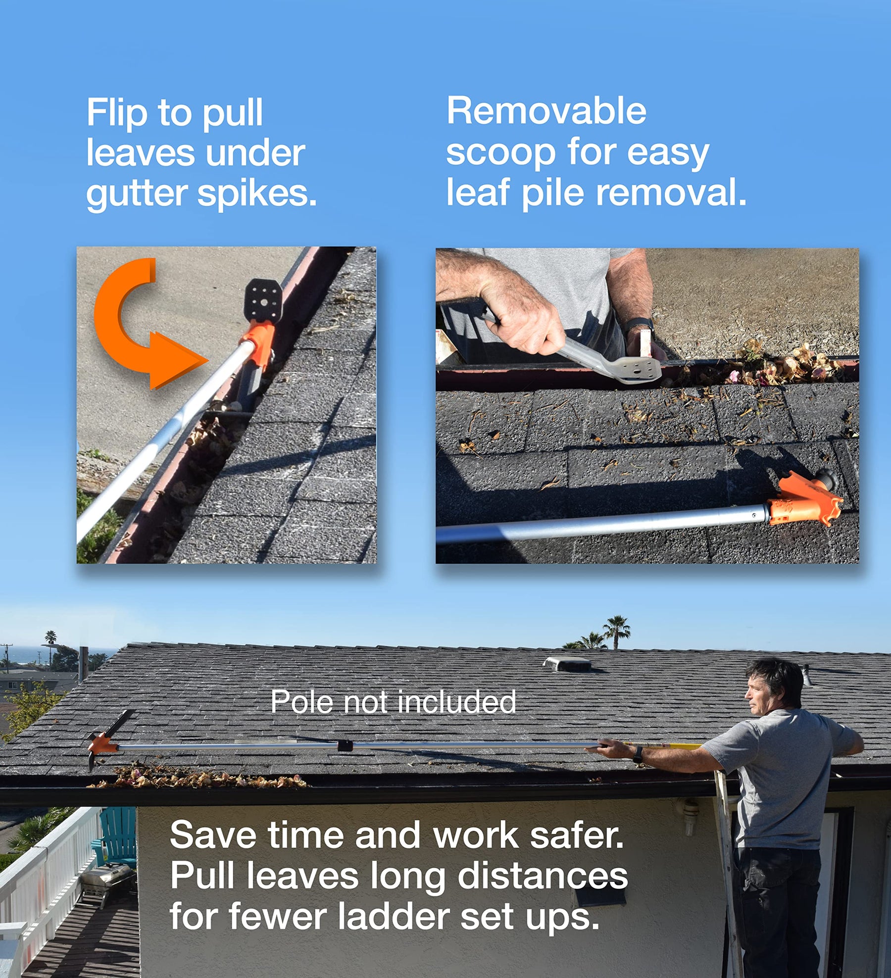 - Loads of Configurations and Uses: Use the patented gutter cleaner scoop by itself in your hand for close work on a ladder and home maintenance. The pole coupler piece fits seamlessly with paint brushes and cleaning tools with handles of up to 1 1/4” diameter…and garden hoses! Making it a perfect gutter cleaning tool from the ground.