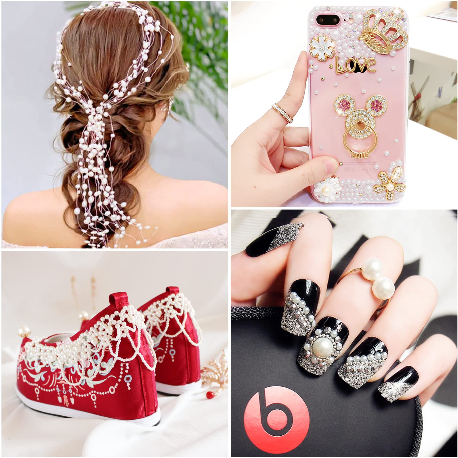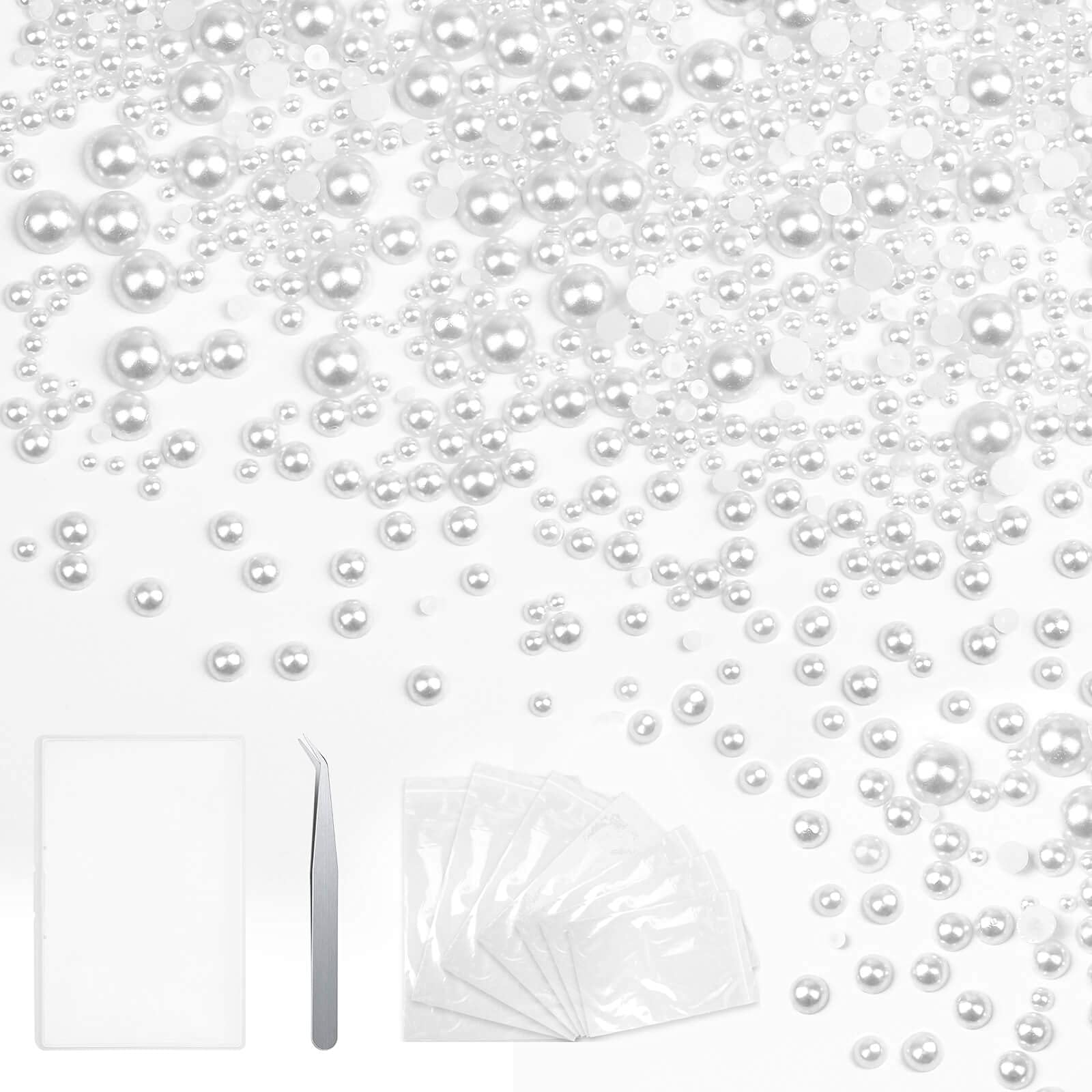 - Come with Tweezers The included tweezers helping you to pick up and place the flat pearls accurately and carefully. It's very convenient to use and you don't need to spend money to buy tweezers separately. Half pearl flat bottom design, you can use glue to stick pearl nail gems on any smooth surface, which will be much firm than self-adhesive ones.