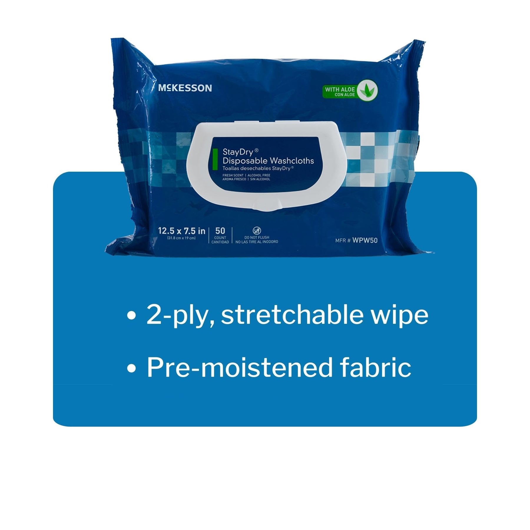 - Original Cleansers & Deodorants – StayDry® Disposable Washcloths with Aloe, 8 X 12 Inch, Soft Pack - Pack of 50 by McKesson