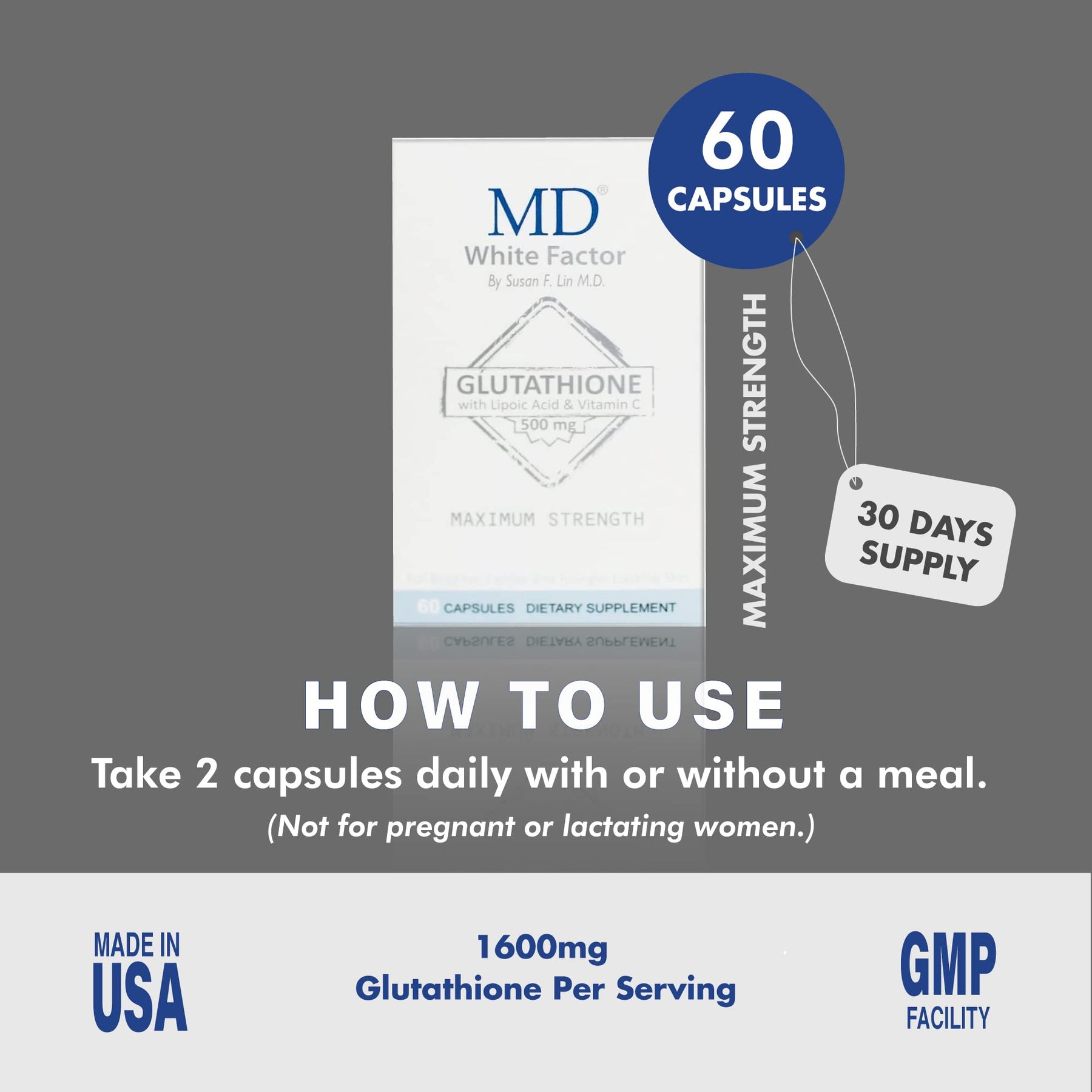 - Original Alpha Lipoic Acid – White Factor - Glutathione Supplement with Effective Antioxidants, Vitamin C & Lipoic Acid, (60 Capsules) by MD