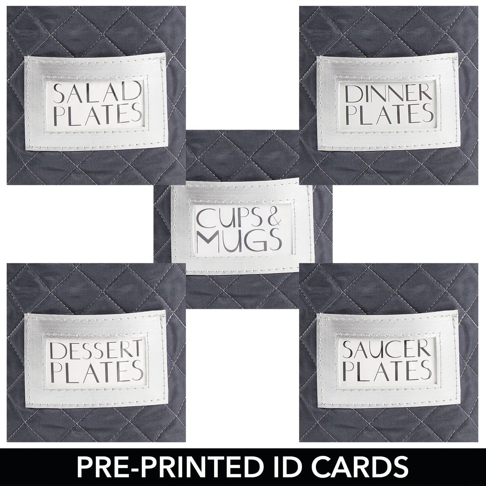 - SMART STORAGE: This premium dinnerware storage set provides you with everything you need to safely store an extra set of dishes; Your fine china, porcelain, dinnerware, inherited and heirloom pieces will be safely stored and protected; The quilted cases will shield your items from dust, dirt and stains; 12 felt dividers are included with each round quilted bag to keep plates from chipping or scratching; The cup chest includes cardboard dividers to keep glasses and mugs safe and secure; 5 Pack