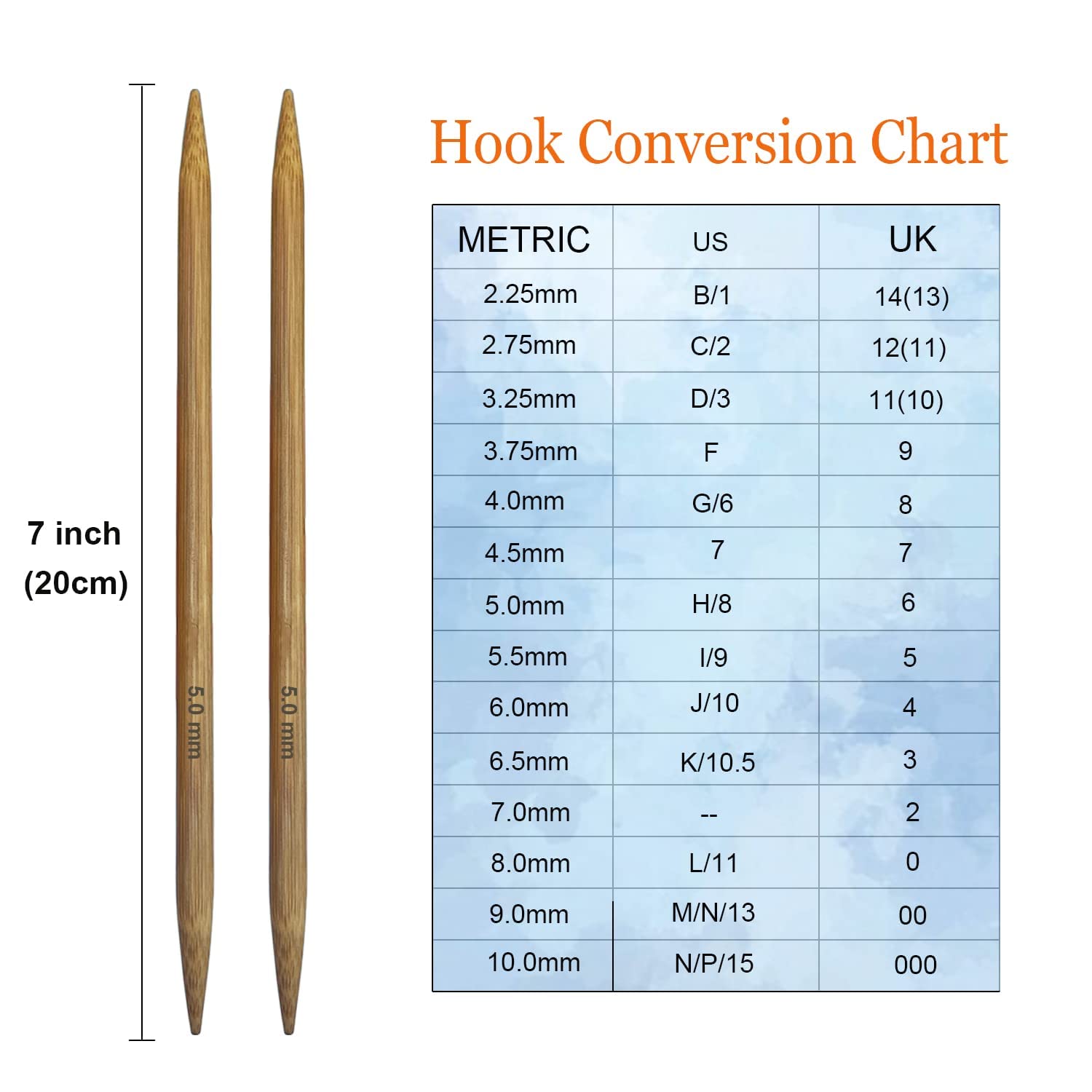 - Set of 5 Double Point needles,each 7.9 (20cm) Mdoker (Premium Bamboo) Double Point Knitting Needles.Size is permanently laser etched on each item for added convenience and easy storage.(If individual needle is bent, because bamboo is flexible,it doesn't affect its use)