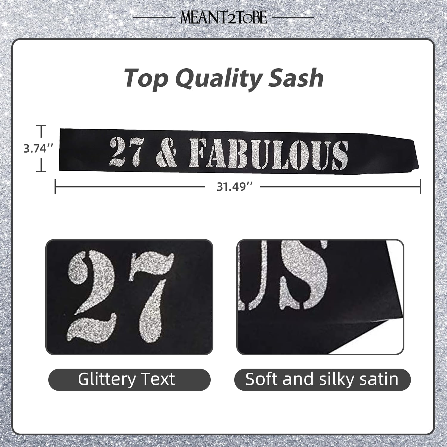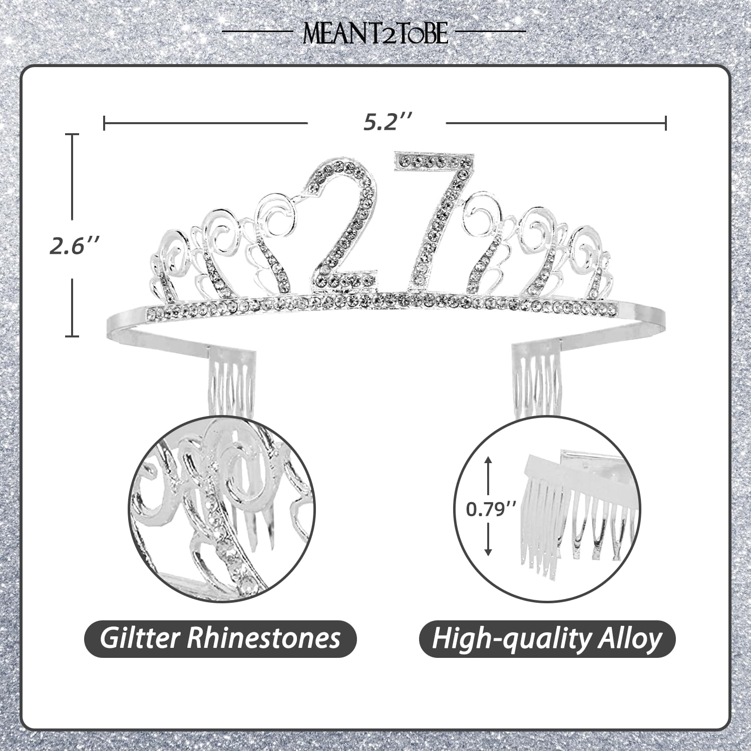 - Original Party Packs – 27th Birthday Tiara and Sash silver, 27th Birthday Gifts for woman, HAPPY 27th Birthday Party Supplies, 27 & Fabulous Glitter Satin Sash and Crystal Tiara Birthday Crown for 27th Birthday Party Suppli by MEANT2TOBE