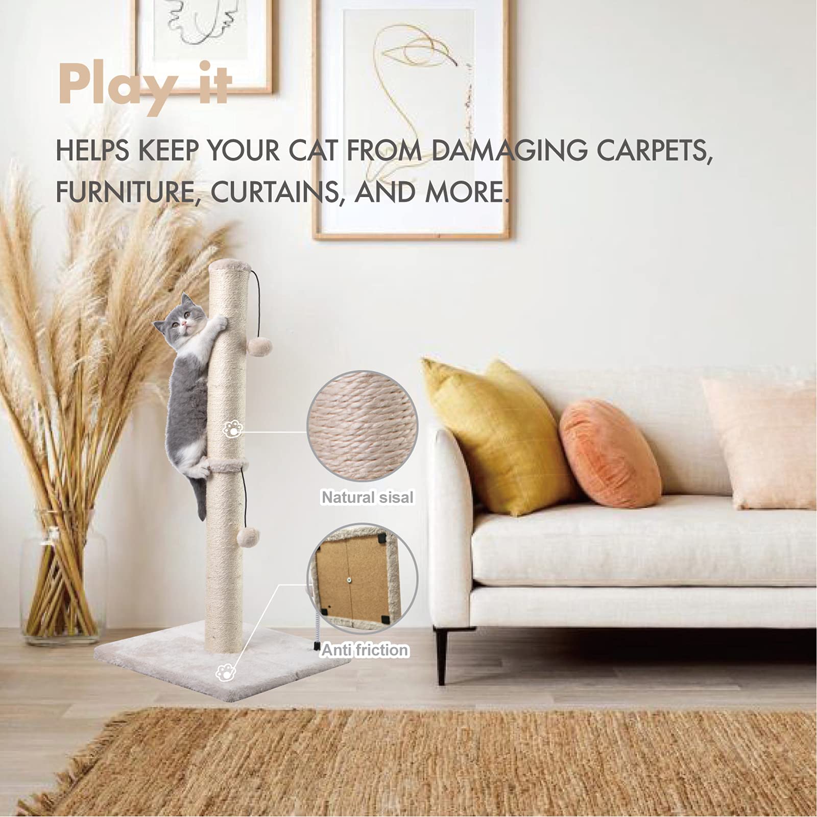 - Original Scratching Posts – 34” Tall Cat Scratching Post Premium Basics Kitten Scratcher Sisal Scratch Posts Trees with Hanging Ball for Indoor Cats, Beige by MECOOL