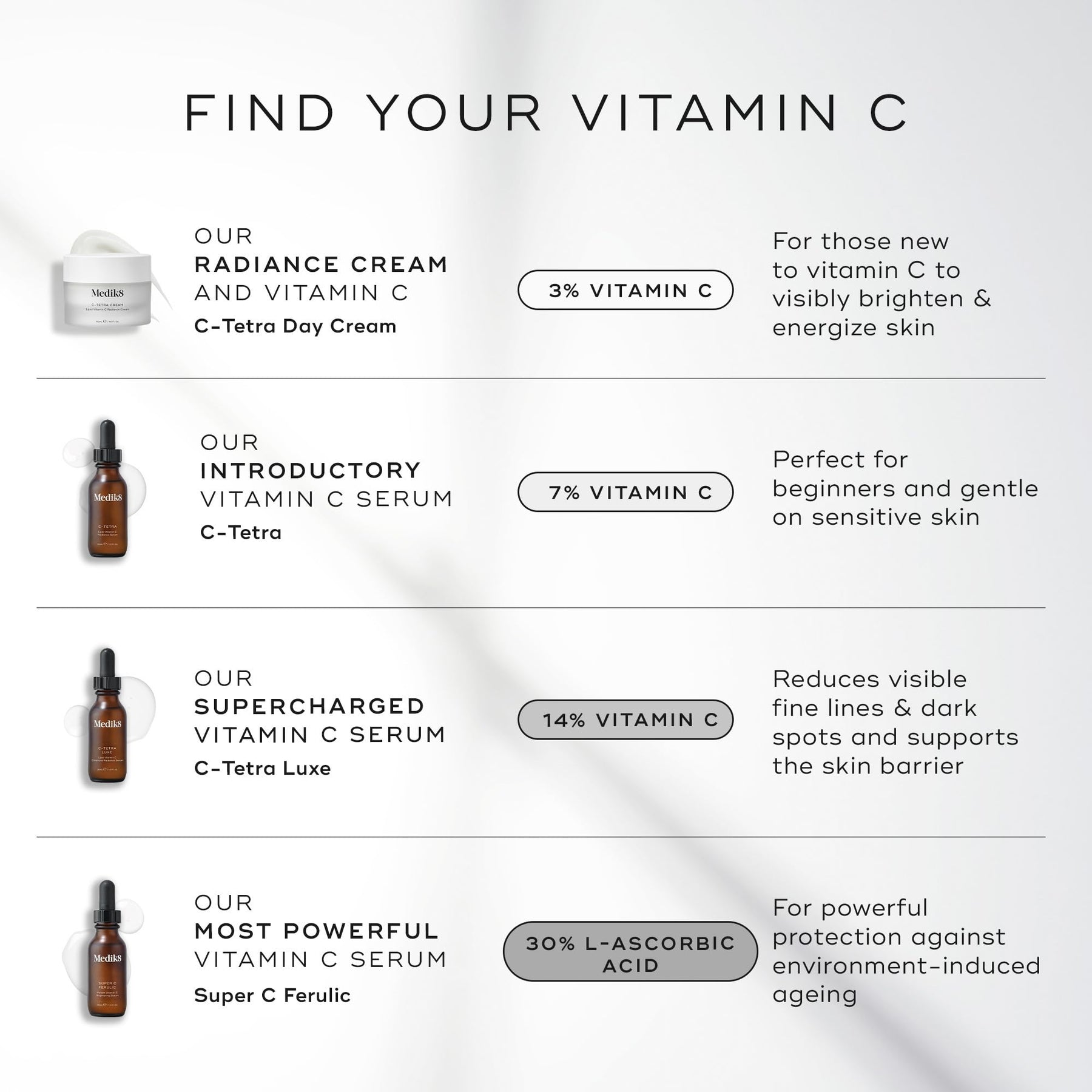 - Original Serums – C-Tetra - Brightening, Balancing, Plumping Daily Vitamin C Serum - Firming Treatment for Radiance and Smooth Skin Texture - Fine Line and Wrinkle Reducing Formula with Squalane - 1.0 oz by Medik8
