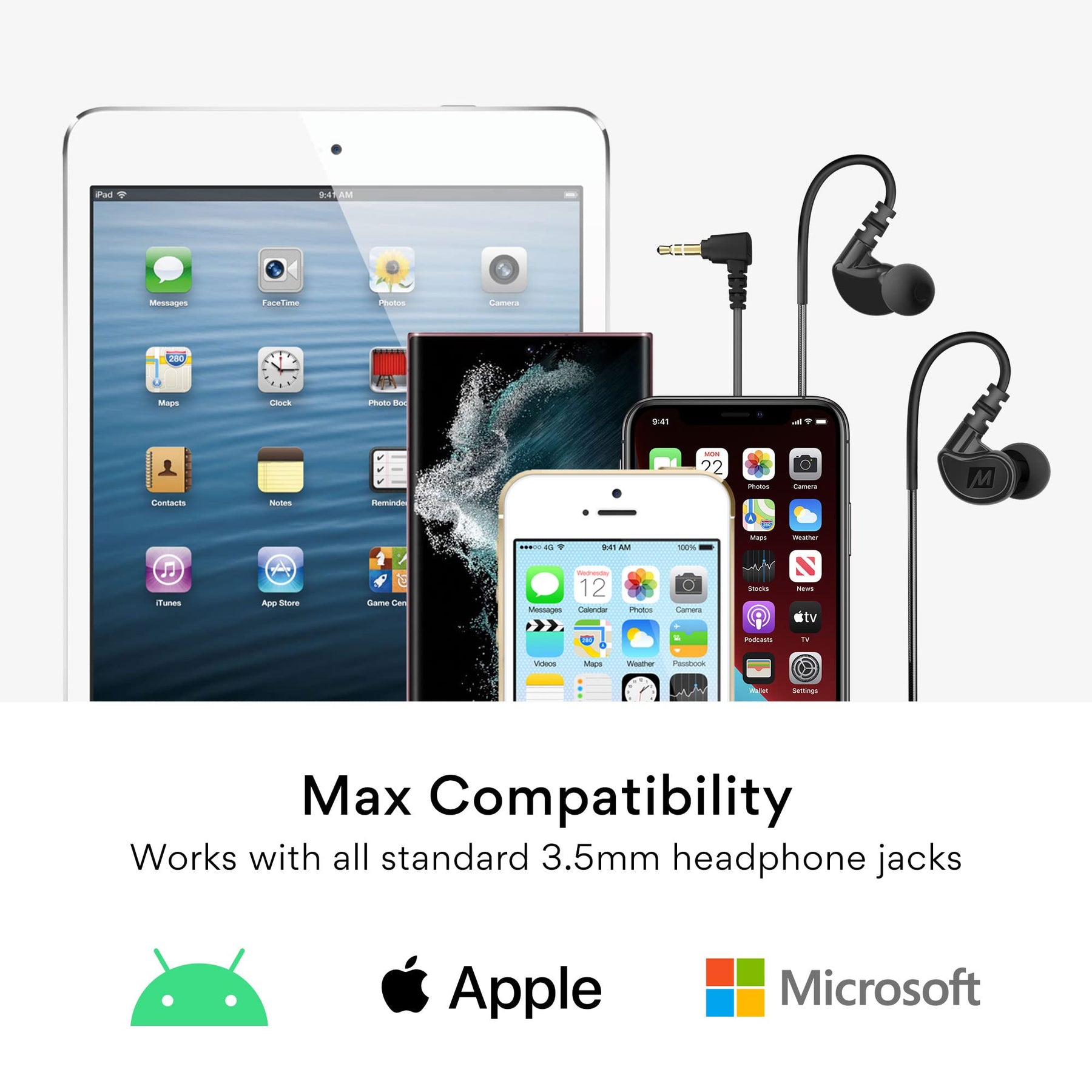 - COMPATIBLE WITH all devices that use a standard 3.5mm (1/8”) headphone/AUX jack including iPhone/iPad/iPod and other phones/tablets (3.5mm adapter may be required), mp3 players, computers, gaming consoles/controllers, and gym equipment