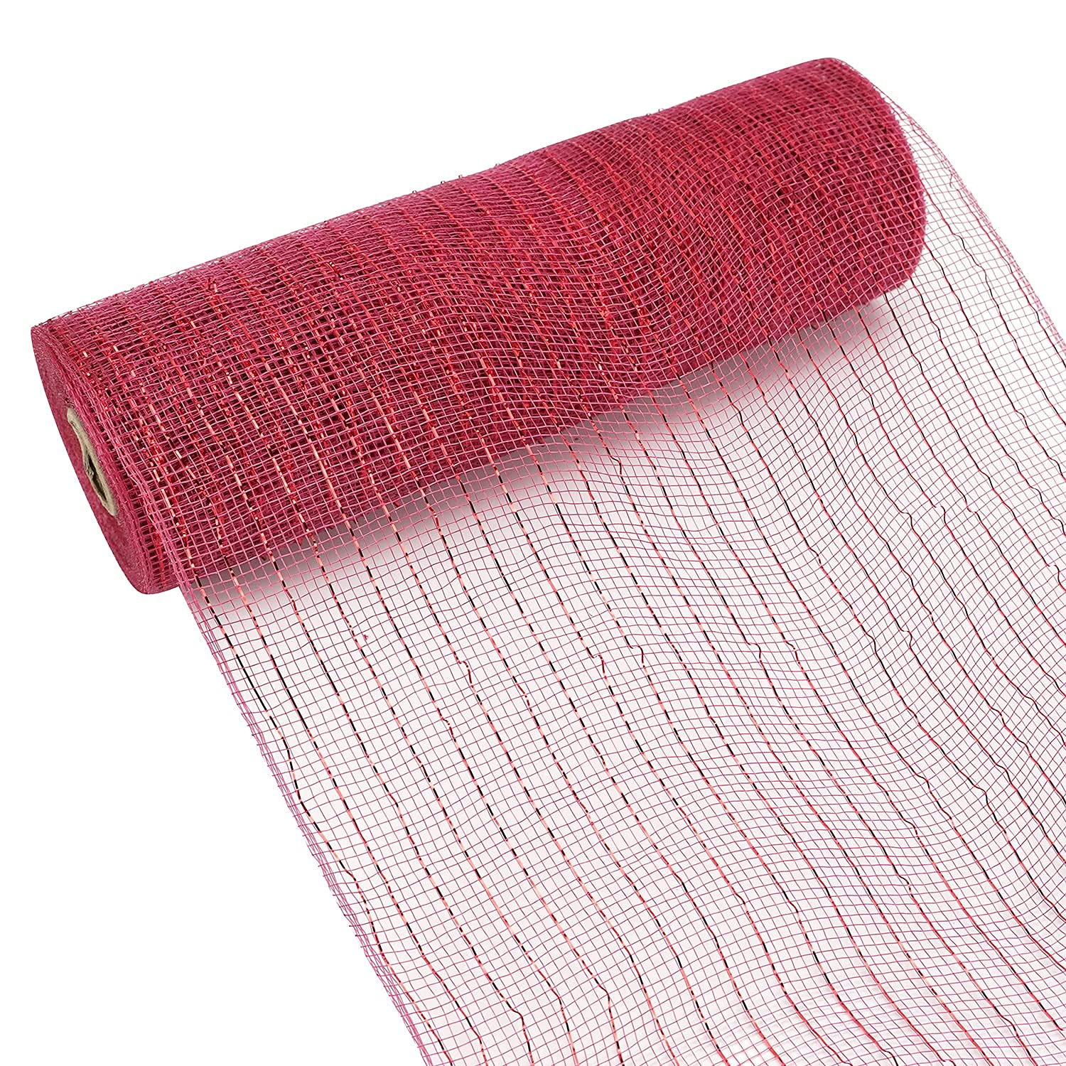 - Original Ribbons – Wine Red Christmas Mesh Ribbon for Tree Mesh Wreath Ribbon Mesh Rolls 10 inch,Wine red & Red Metallic for Wreaths Swags Bows Crafts Home Party Decoration ( 30 feet ) by MEEDEE