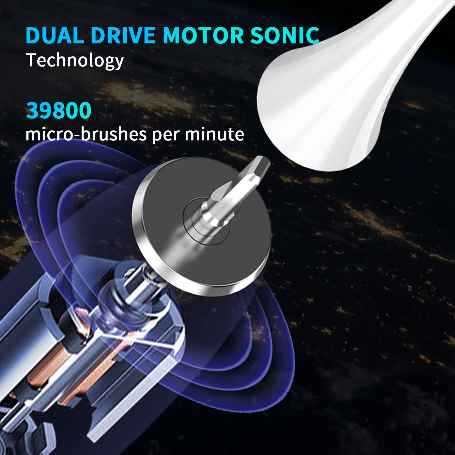- Efficient Oral CarePatented design of dual drive motor, new generation of high frequency sonic technology, generates micro bubbles to clean teeth, massage gums, remove plaque, prevent tooth decay and improve oral health. 39800 vibrations per minute/minute.