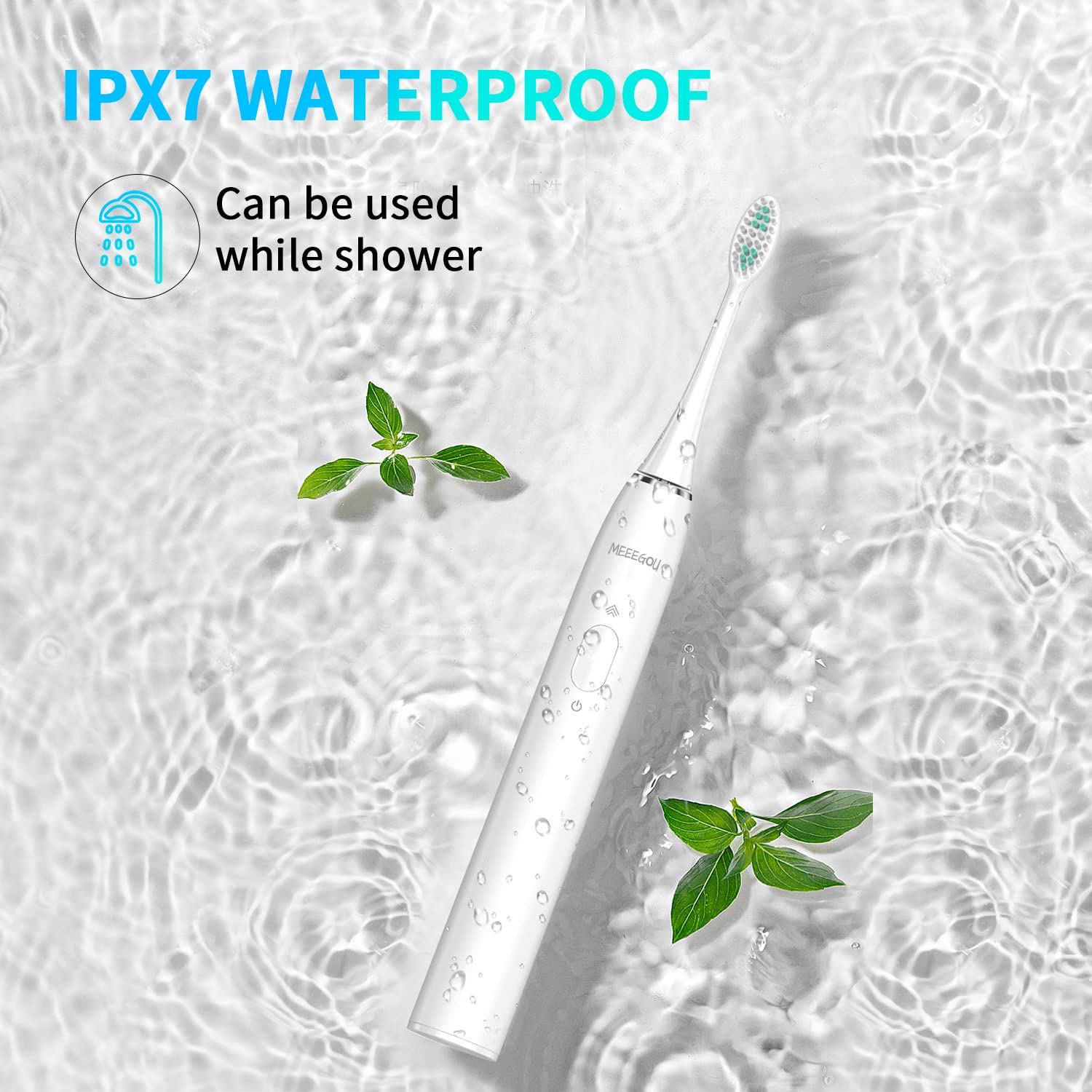 - 3 strengths & 5 high-performance brushing modesMEEEGOU Sonic Toothbrush has 5 modes to suit different teeth and gum conditions. Clean - for daily cleaning; Strong - for removing stubborn stains; Whitening - for improving the brightness of teeth; Soft - for first time use or sensitive teeth; DIY - Customized solutions according to your needs.