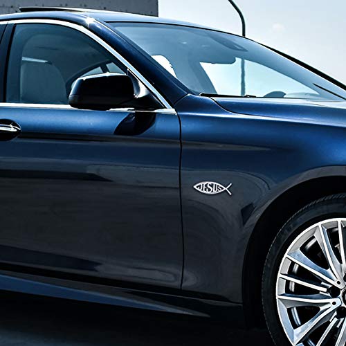 - Specification - Material: brushed aluminum decals for cars, Jesus Fish decals Sticker for cars Emblem size is 5 x 1.75 inches with peel & stick foam adhesive