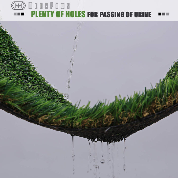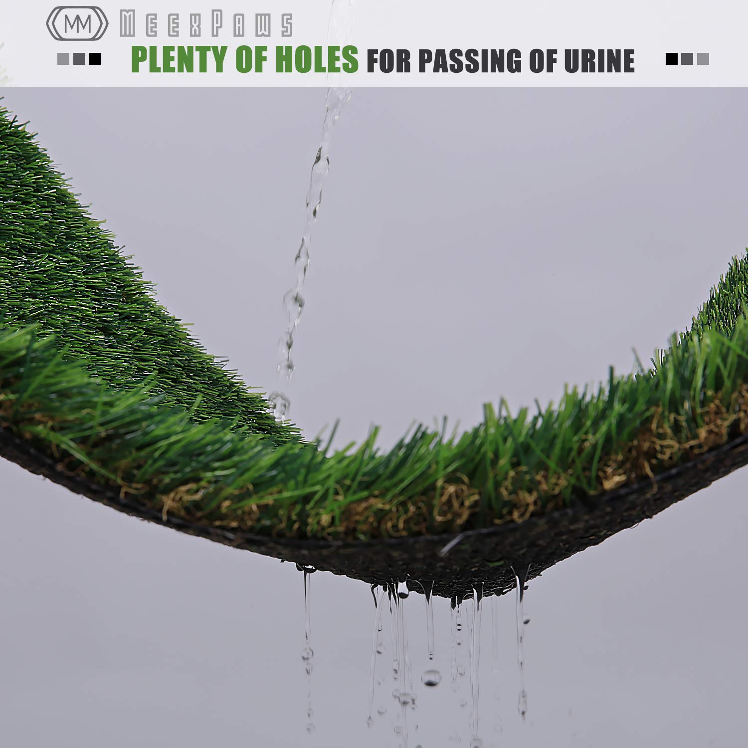 - 2 ARITIFICIAL GRASS PADS: It is convenient for you to wash one while the other is available for use. Designed with reinforced tufts and a strong rubber backing to withstand the tearing of pet. The bottom of artificial grass features much more small holes, liquids can go through the grass pad quicker and won’t sit on the surface