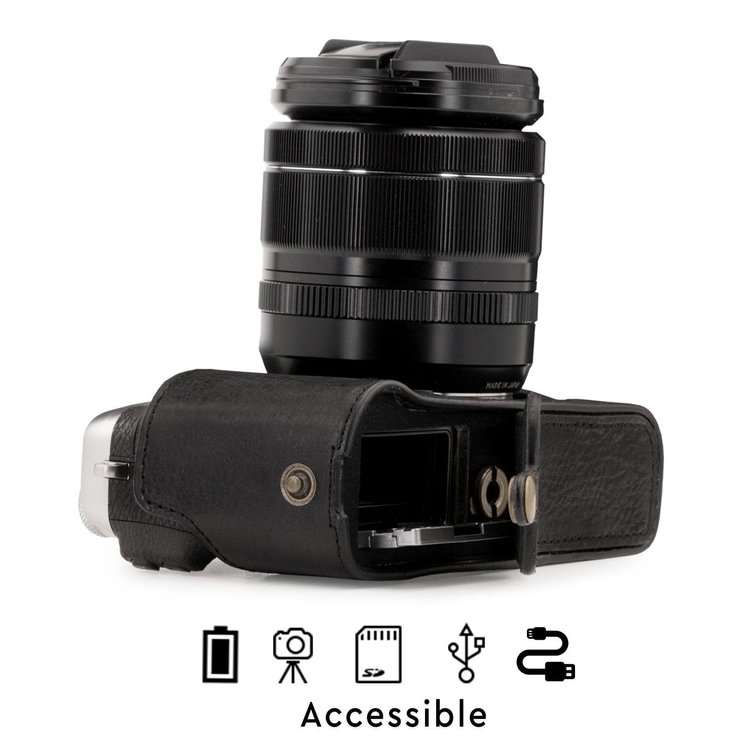 - BESPOKE FIT - The MegaGear Premium Genuine Leather Camera Half Case with Battery Access is specifically tailored using high quality leather for the Fujifilm X-E3 models for precision fit and coverage.