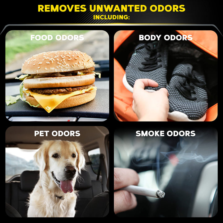- AIR REFRESHER: Aerosol mist moves through the ventilation system, across the headliner and in between all other hard-to-reach areas, eliminating odors and leaving a pleasant scent in its place