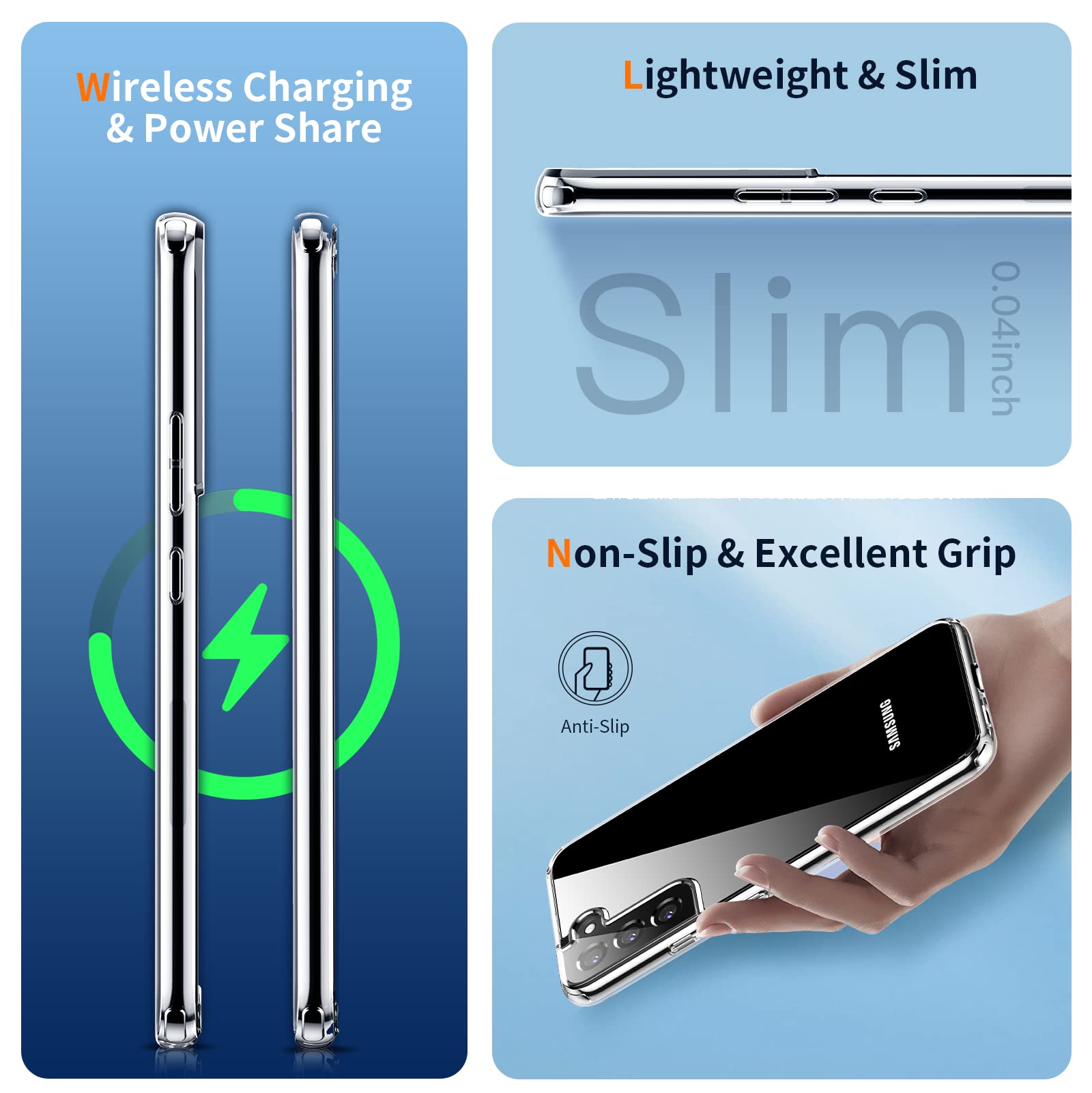 - Super Crystal Clear & Slim DesignThis case is specially designed for Samsung S22+ 6.6 inch case. Crystal clear HD design allows this clear case to showcase your new phone's original look without reservation and avoids annoying bubbles or smudges. Slim profile design will not increase thickness while protecting your precious device.