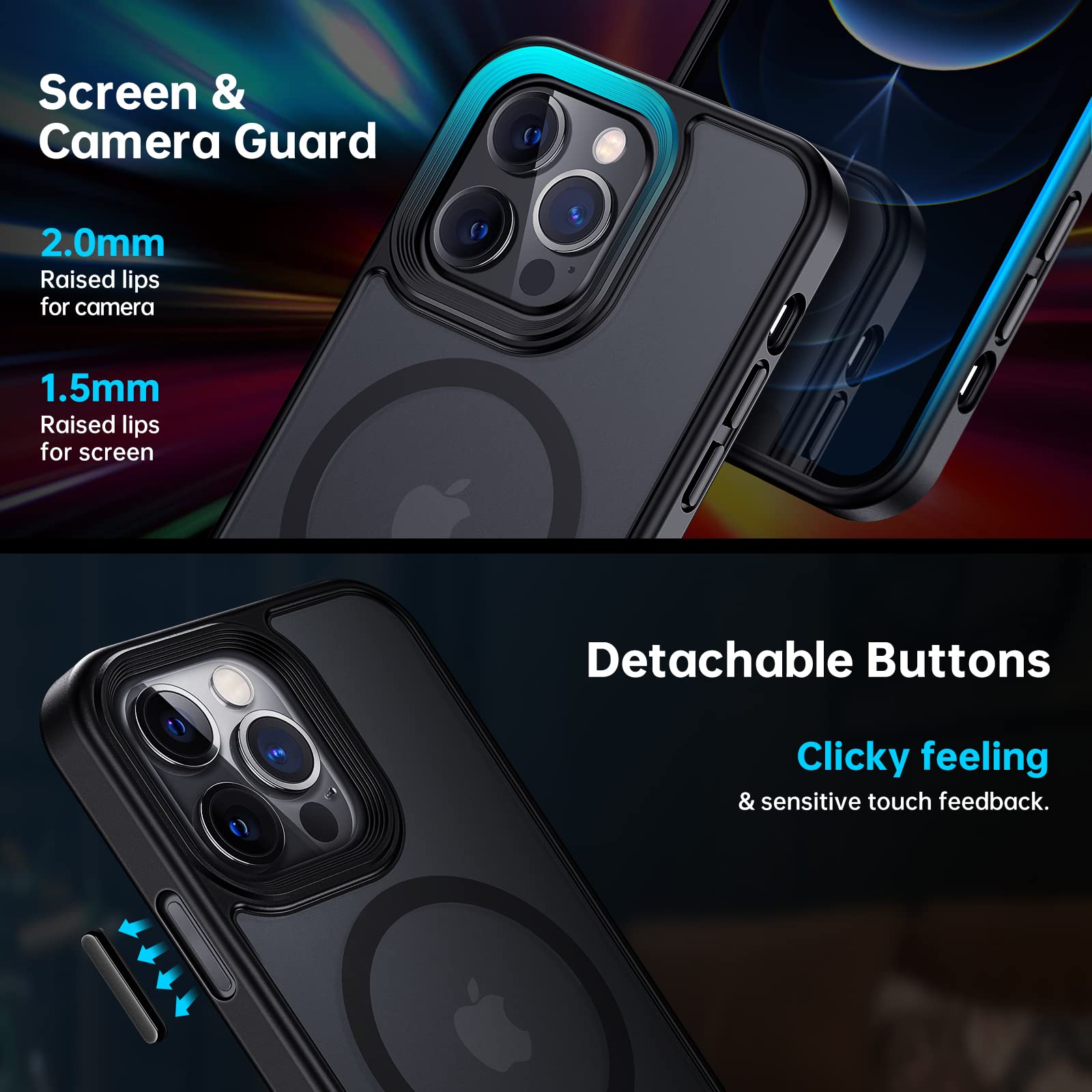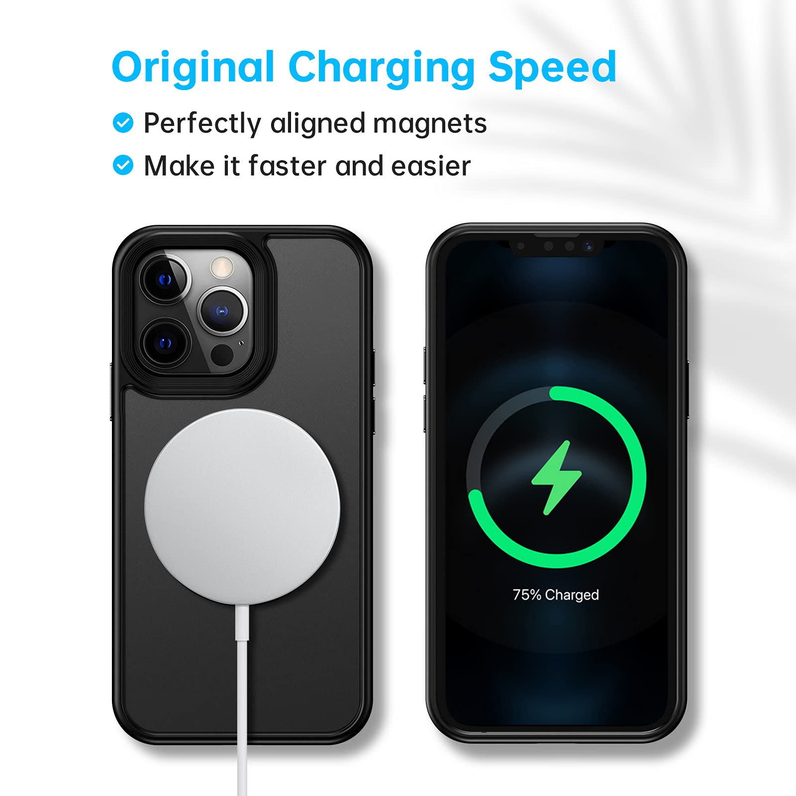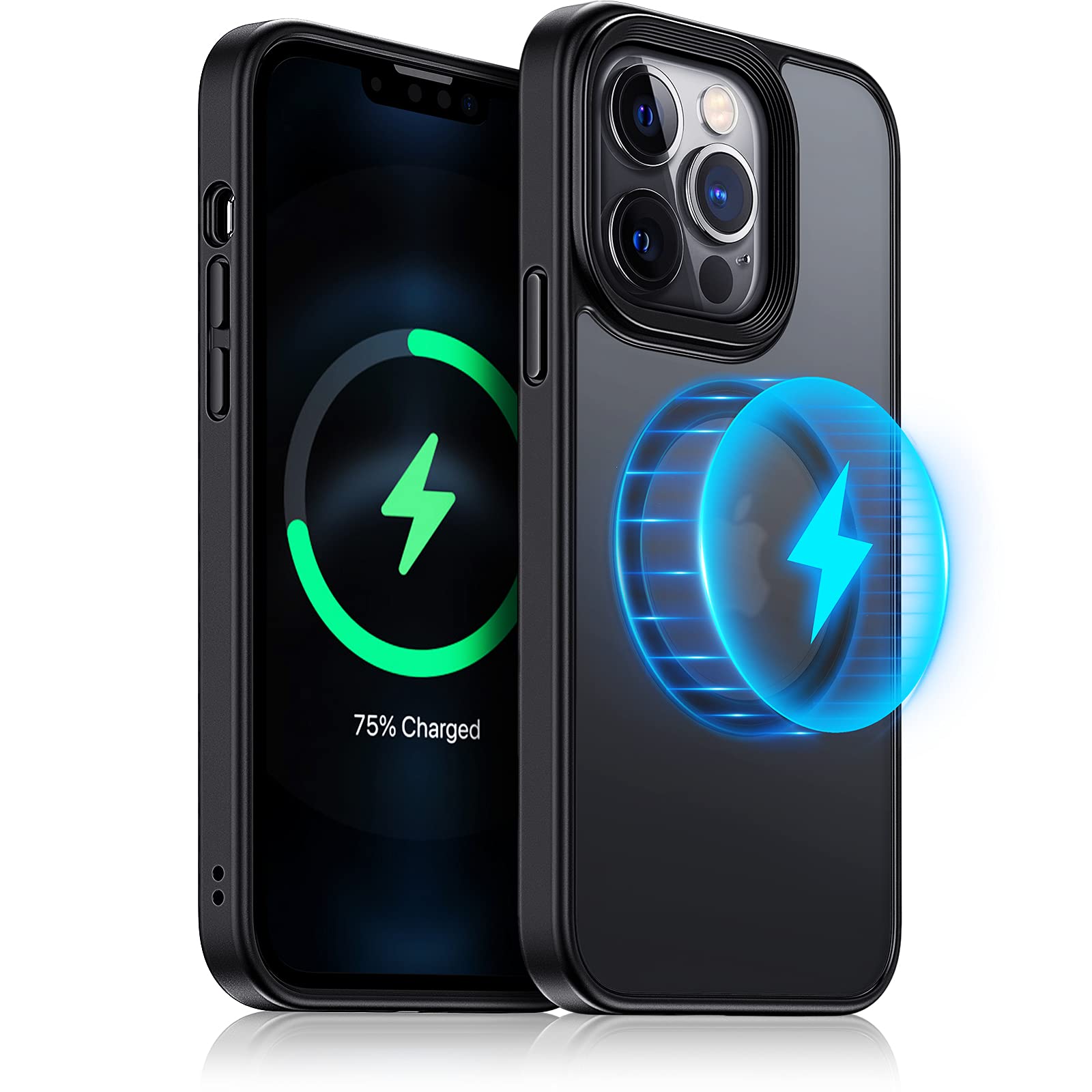 - Original Basic Cases – Magnetic Case Designed for iPhone 13 Pro, [Compatible with MagSafe & Military Grade Protection], Translucent Matte Back with Soft Silicone Edge, for iPhone 13 Pro 6.1 Inch, Black by Meifigno