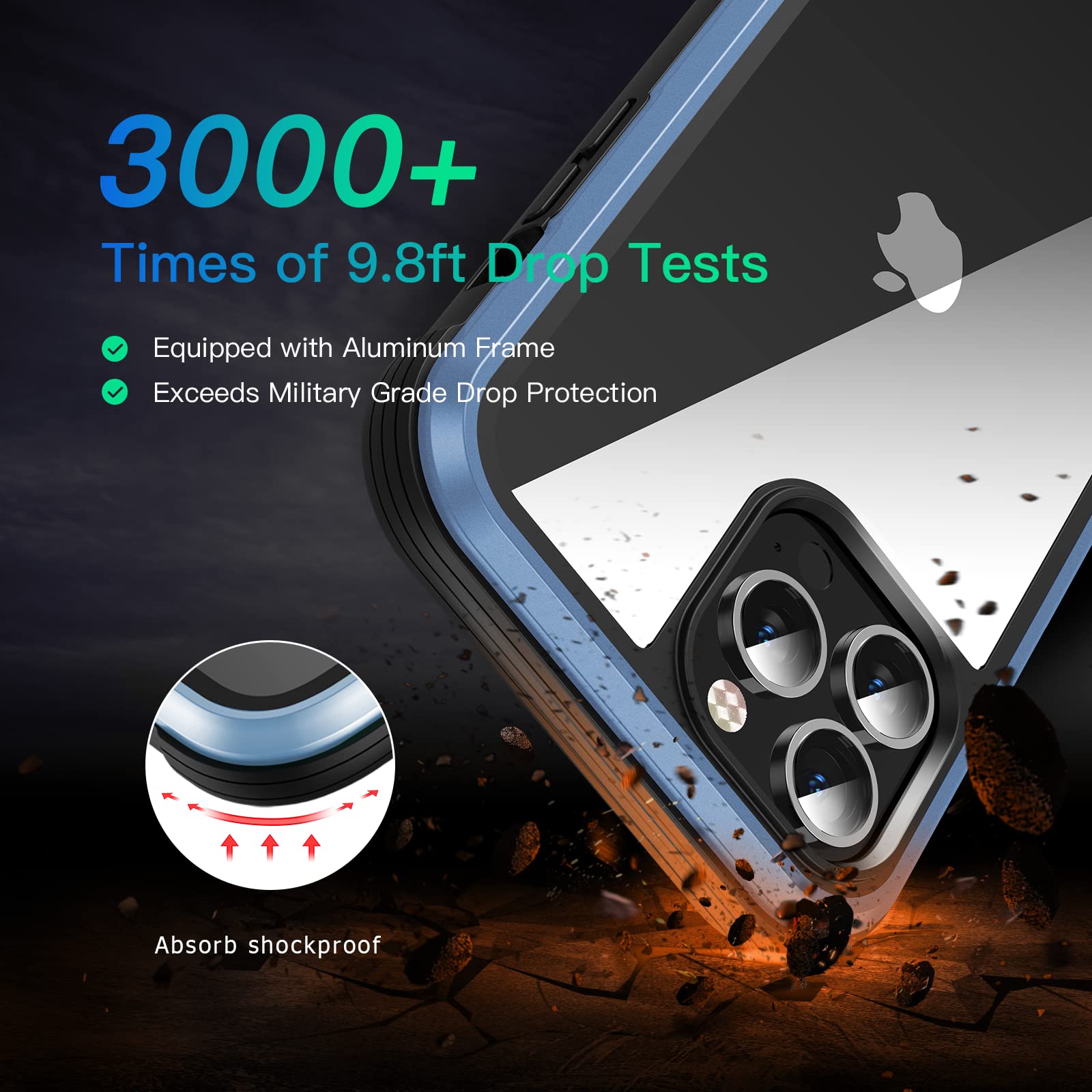 - Exceed Military Grade Anti-Fall StandardsWearing this 13 Pro Max case, your phone is certified to survive even if it falls 3000 times from a height of 3m (9.8 feet) to a hard ground. Please refer to the third picture.