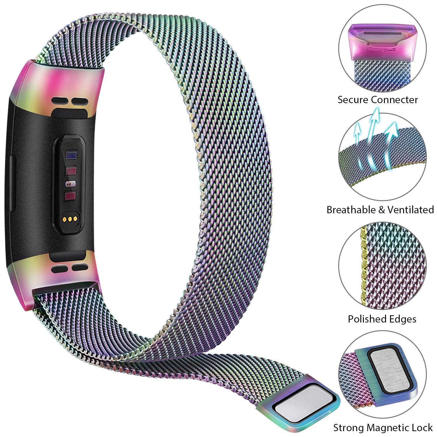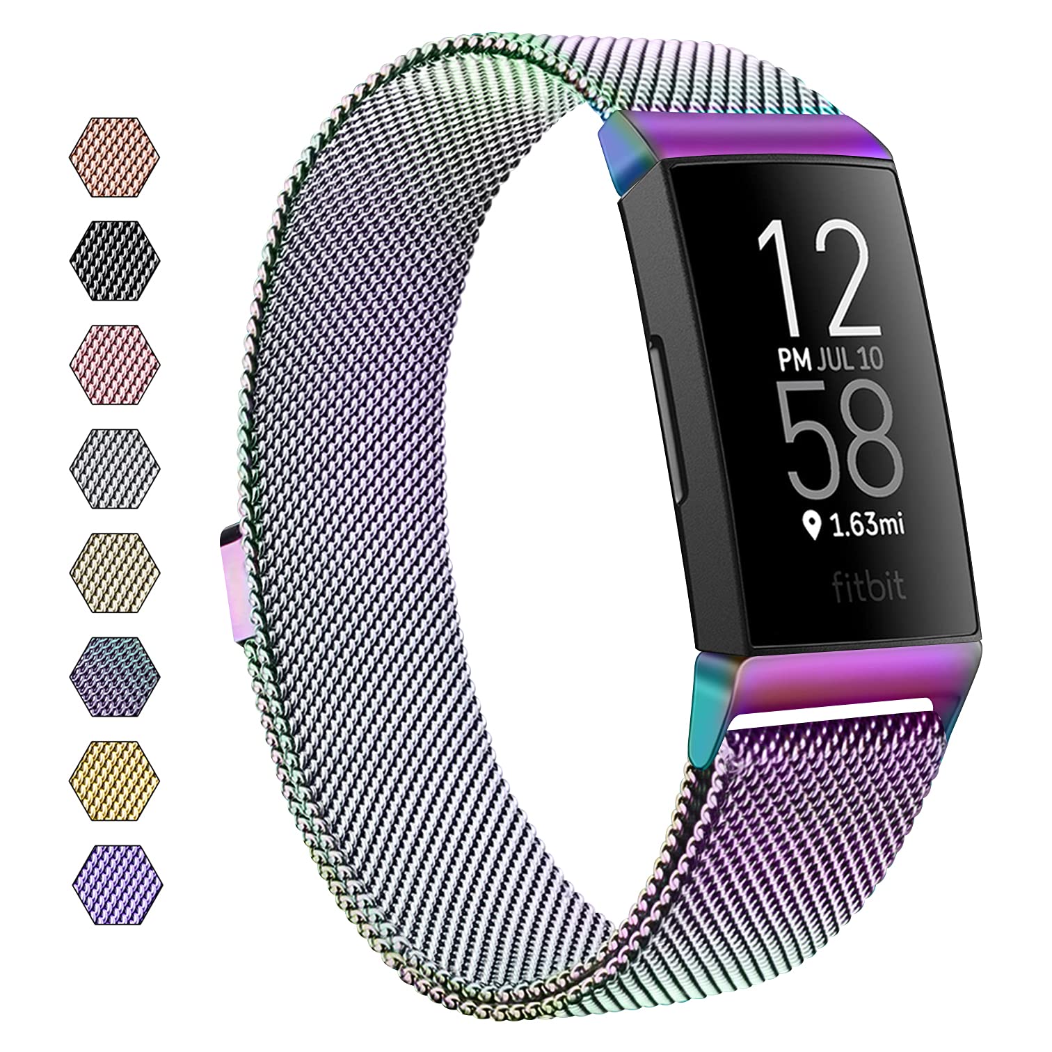 - Original Arm & Wristband Accessories – Metal Bands for Fitbit Charge 4 & Fitbit Charge 3 & Charge 3 SE, Stainless Steel Magnetic Lock Replacement Wristbands for Charge 3 & Charge 4 Women Men Small Large (Small, Colorful) by Meliya