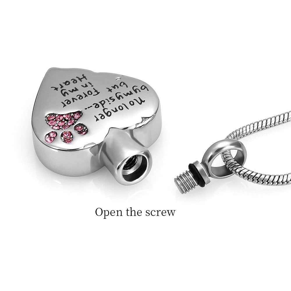 - DesignUnique heart shape+pet paw print,no longer bu my side,but forever in my Heart.Interpret the emotions to the fullest,when you see the heart urn keepsake necklace,Just like the person you love is with you.