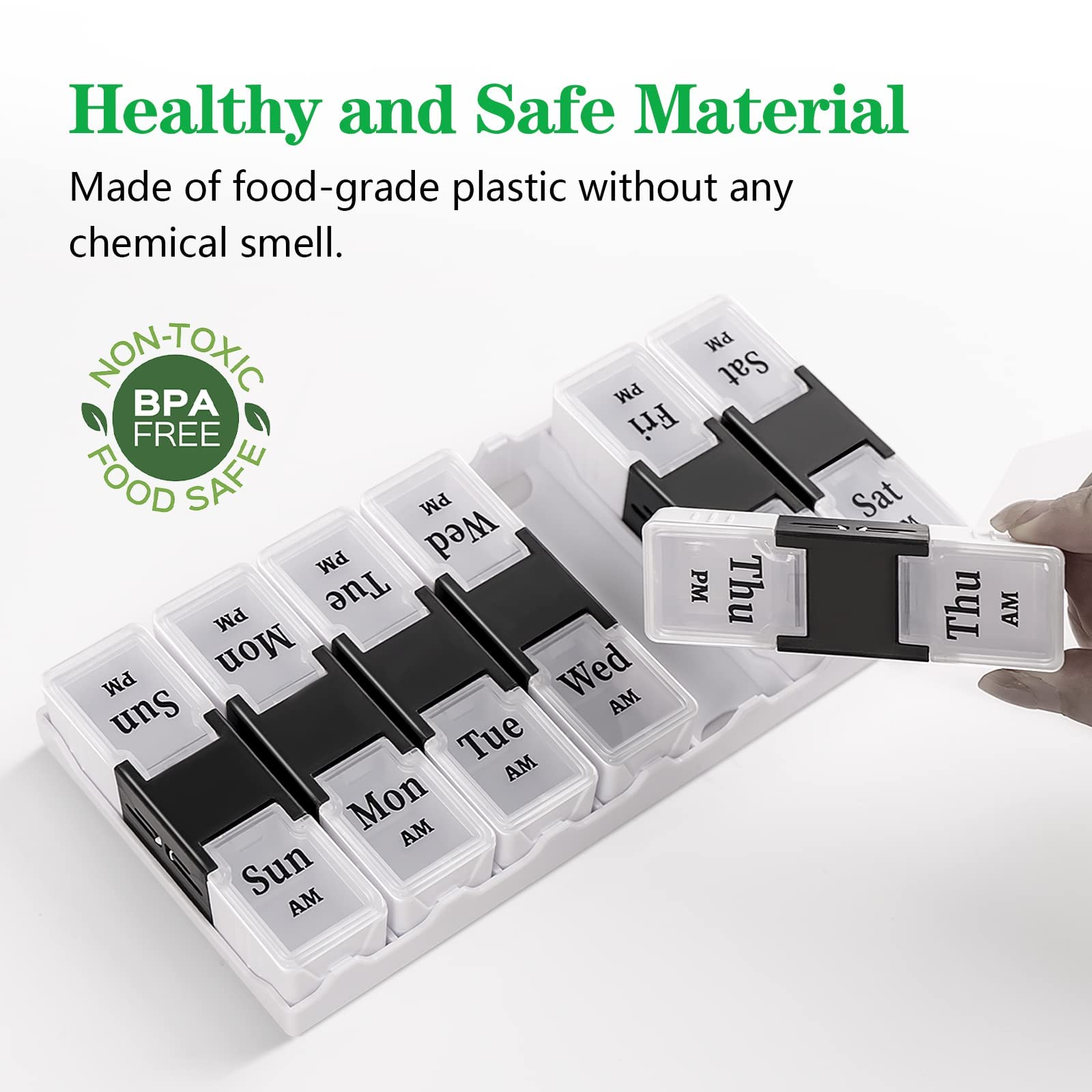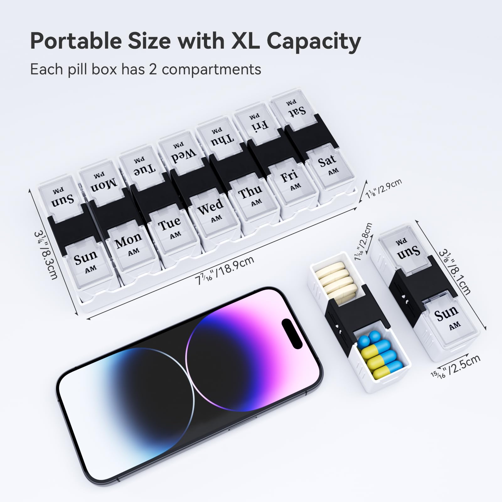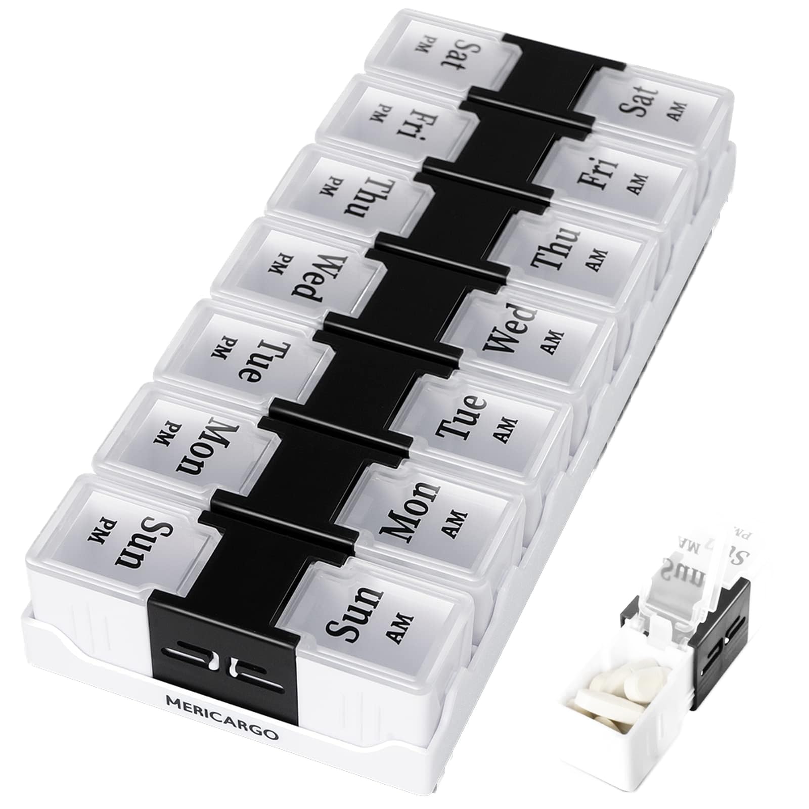 - Original Pill Organizers – Weekly Pill Organizer 2 Times a Day, Easy Open Travel Pill Box, Am Pm Pill Organizer 7 Day for Medicine, Vitamins, Fish Oils and Supplements by MERICARGO