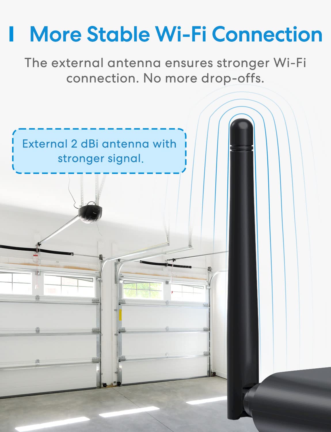 - External Antenna: It has an external 2 dBi antenna and can better receive WiFi signals. It can support up to 3 garage doors at the same time. (2 doors sensors are included in the package. the third door sensor needs to be purchased separately)No monthly fee or any other subscription fee