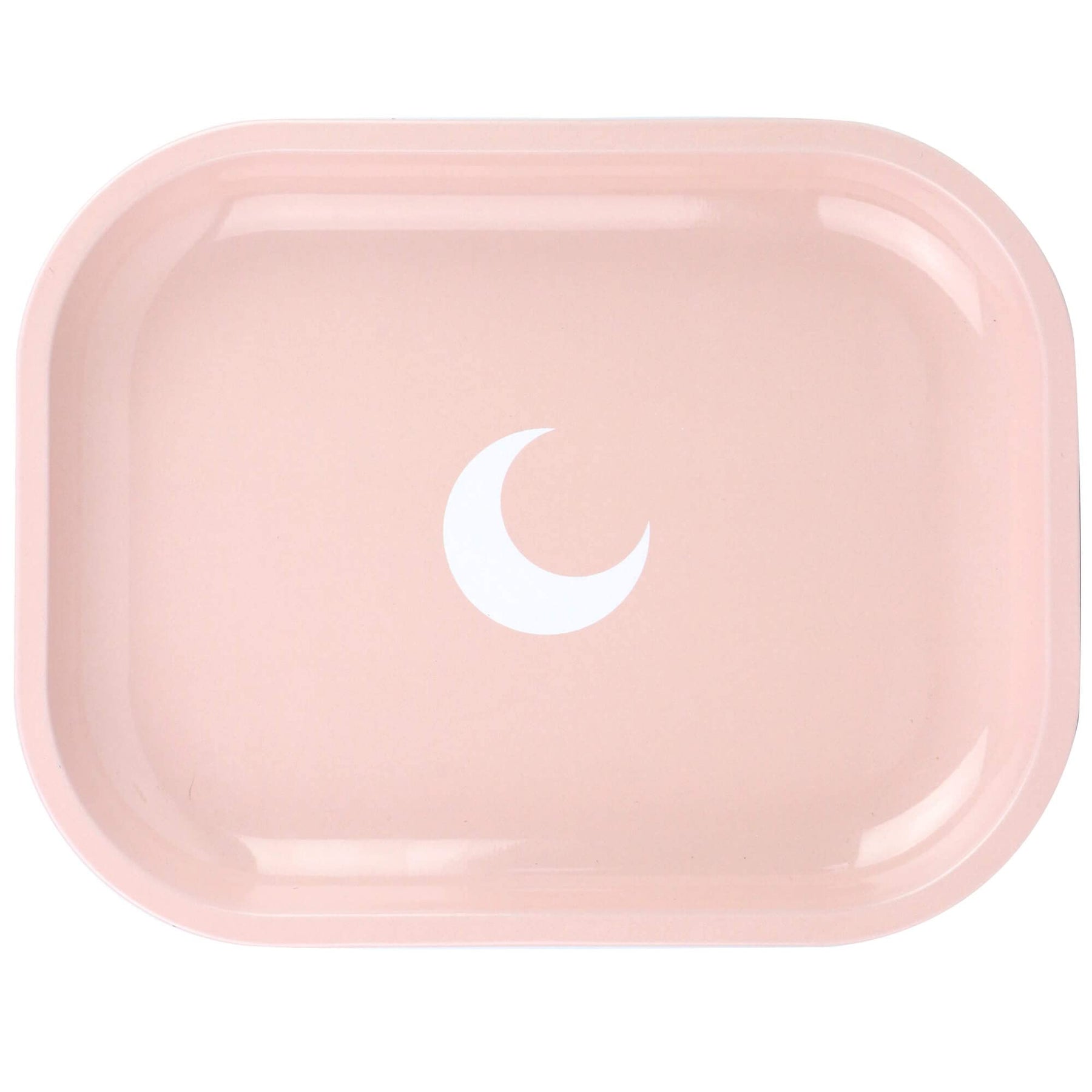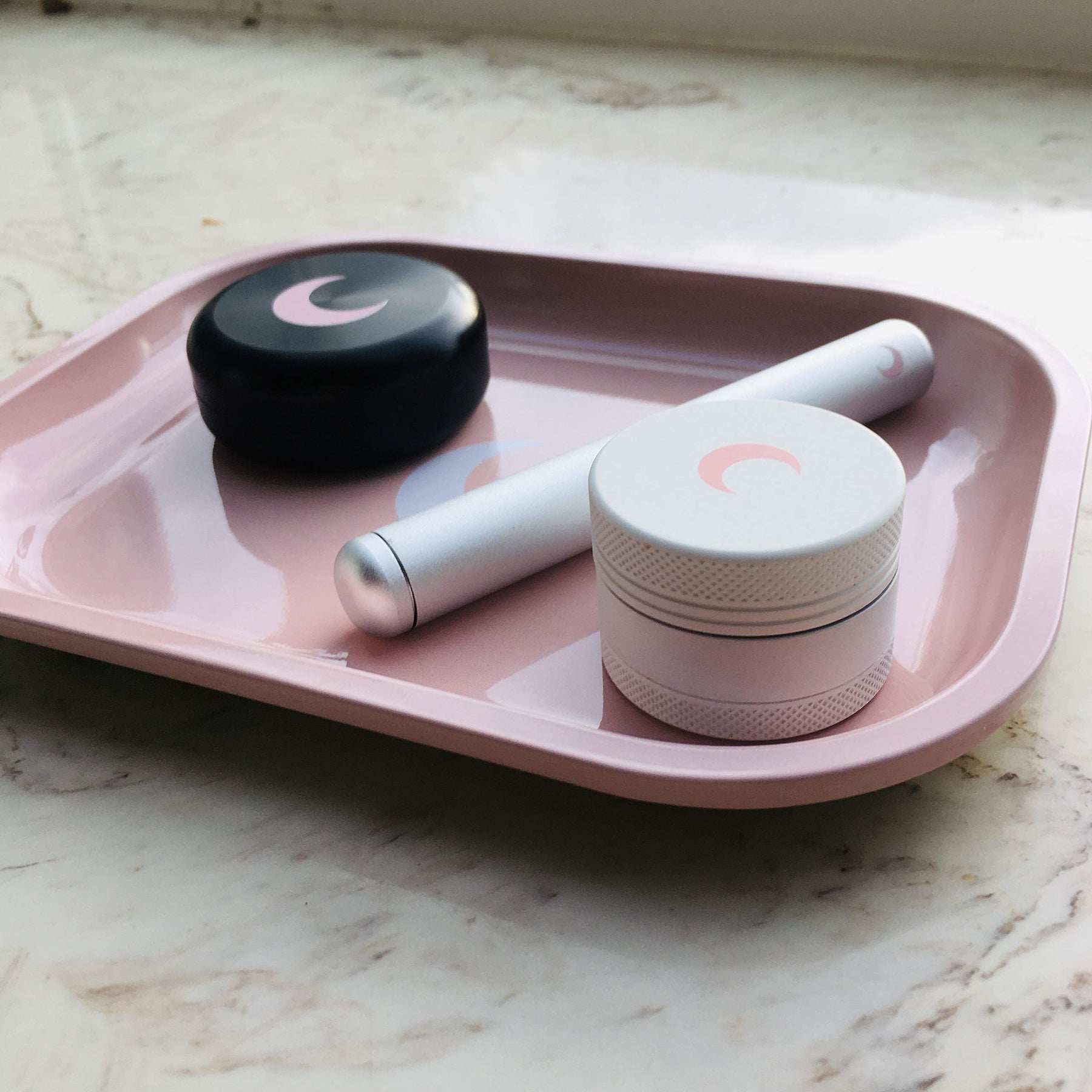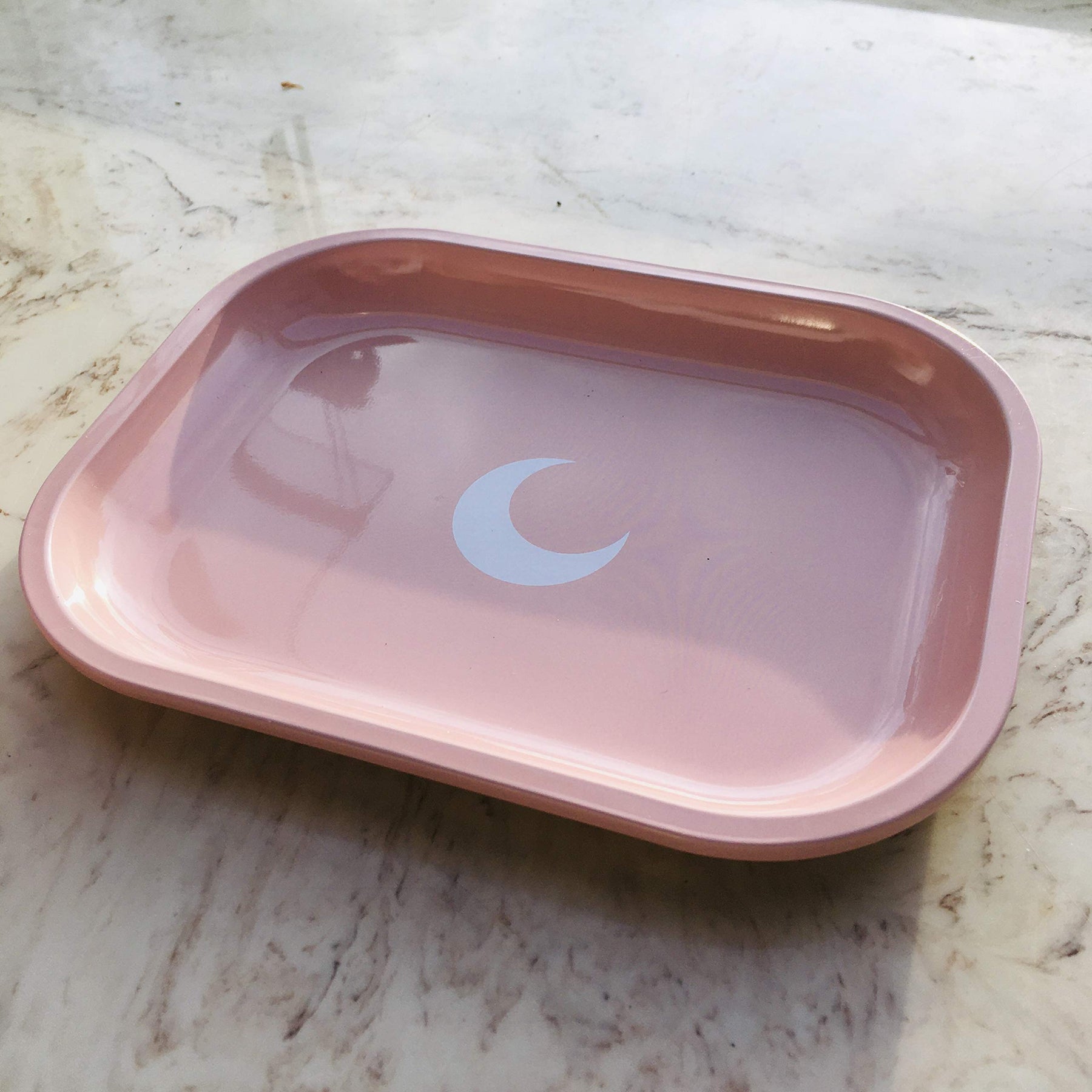 - This moon lit rolling tray is beautiful! We made this small tray with a durable metal, then we put a white part-clear enhanced finish on it! So, its look is gorgeous!