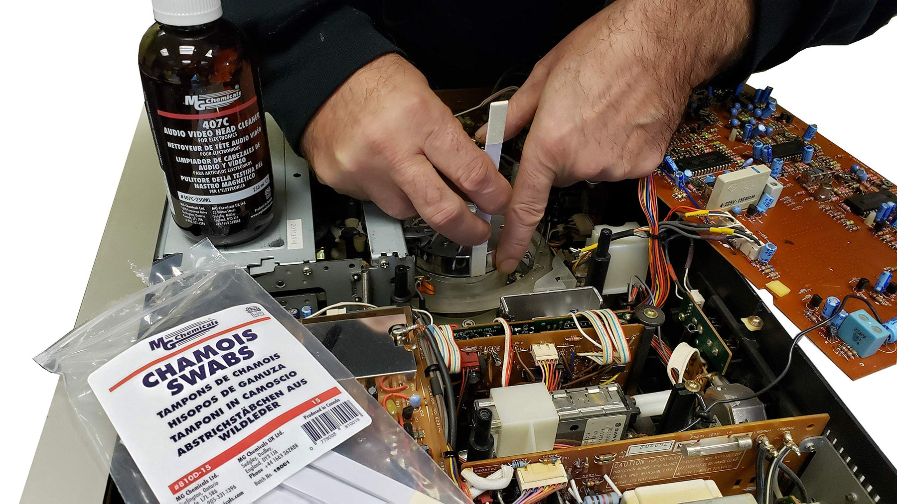 - Perfect for use with M.G. audio/video head cleaner