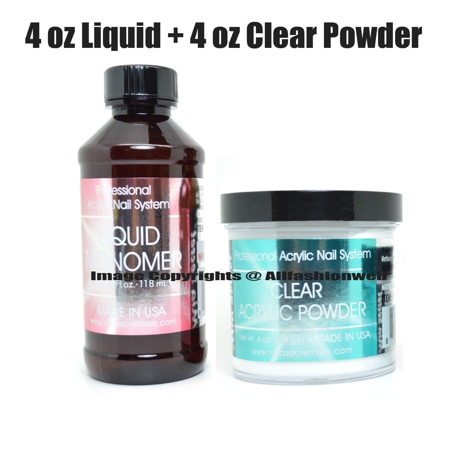 - INCLUDES LIQUID MONOMER 4oz + Clear ACRYLIC POWDER 4oz