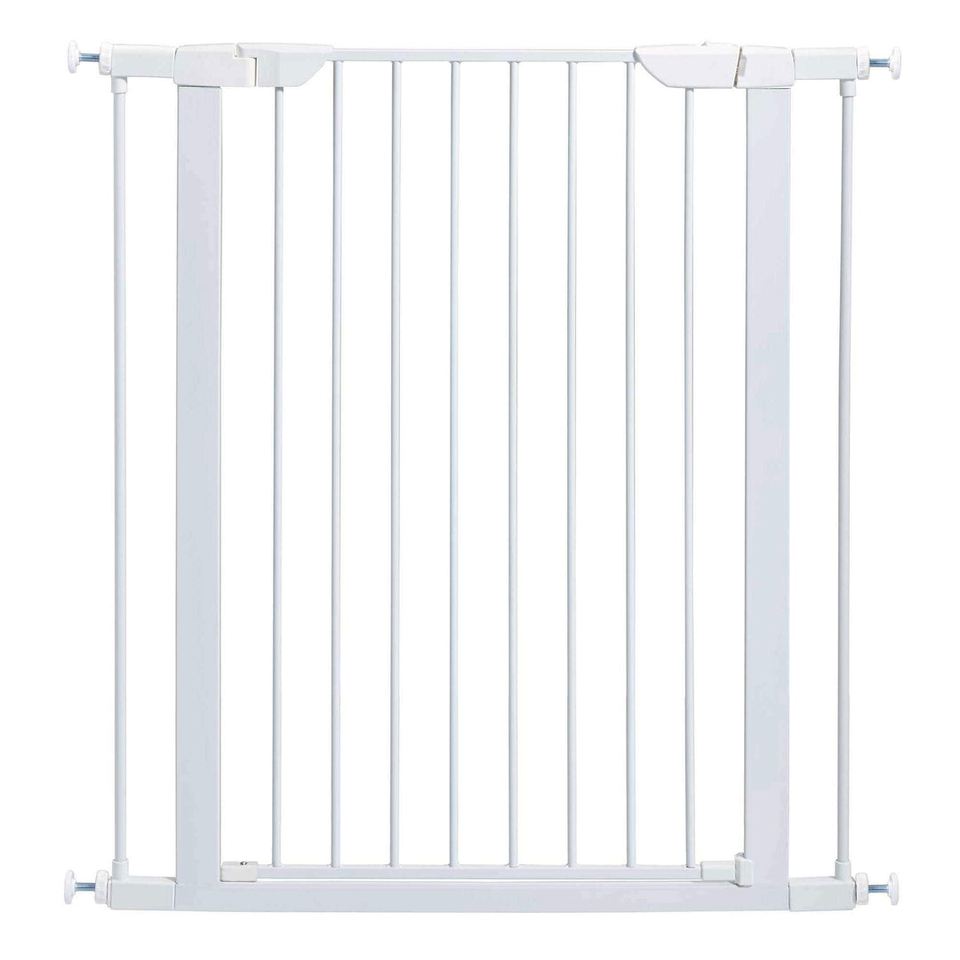 - Original Door & Stair Gates – 39 Inches Tall Walk-Through Steel Pet Gate, Pressure Mounted Dog Gate Measures 29-38 Inches Wide & Includes Two 3-Inch-Wide Extensions, White by MidWest Homes for Pets
