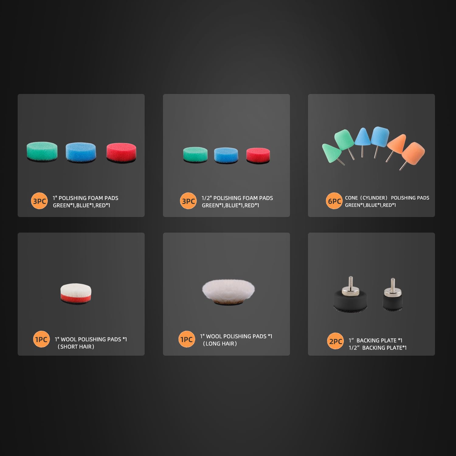 - Original Buffing & Polishing Pads – Mini Buffing Polishing Pads, 16Pcs Mini Detail Polisher Pads Use On Rotary Tools,Cordless Electric Drill, Mini Polisher Tool for Tight Area Detailing Polishing Waxing and Sealing Glaze -HTDEPMIXUS by SPTA