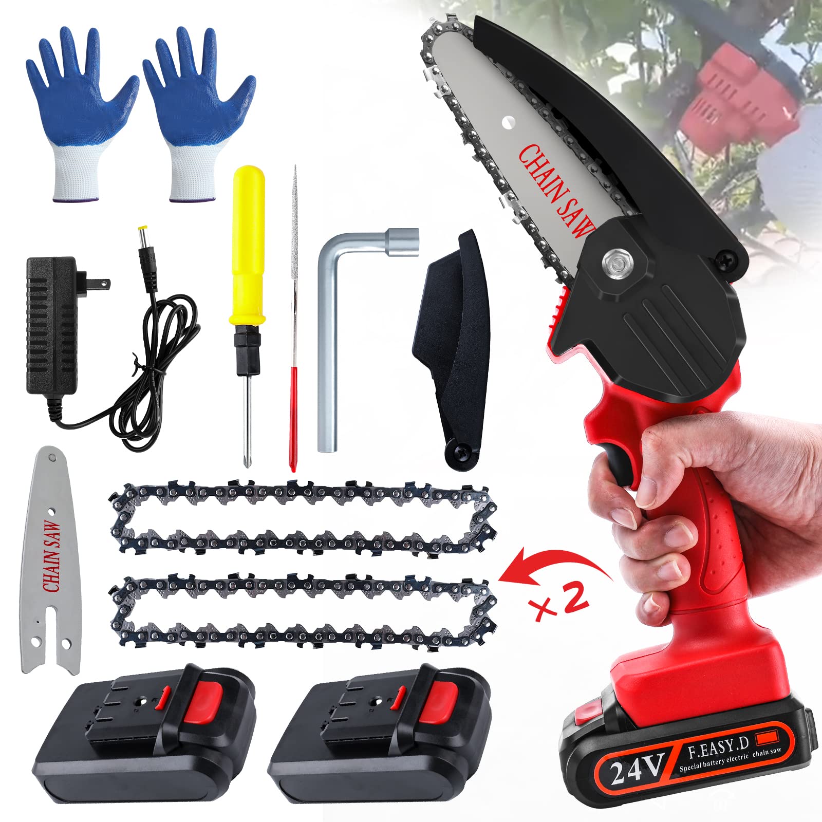 - Original Chainsaws – Mini Chainsaw Cordless, 4 Inch Electric Chainsaw for Women with 2pcs 2000mAh Rechargeable Battery 24V Portable Chainsaw Splash Baffle Safety Button, Handheld Chainsaw for Wood Cutting Tree Trimming by UBYNID