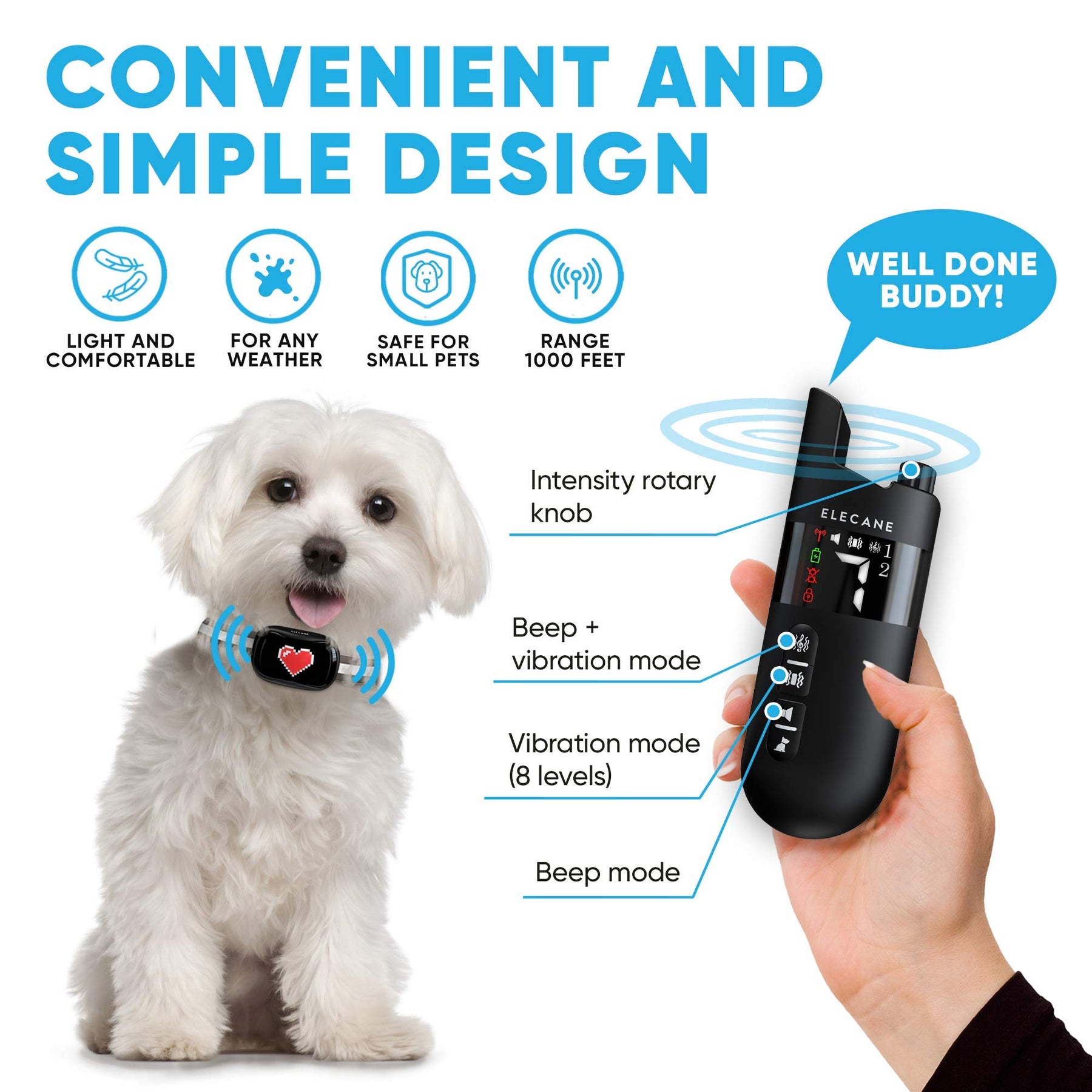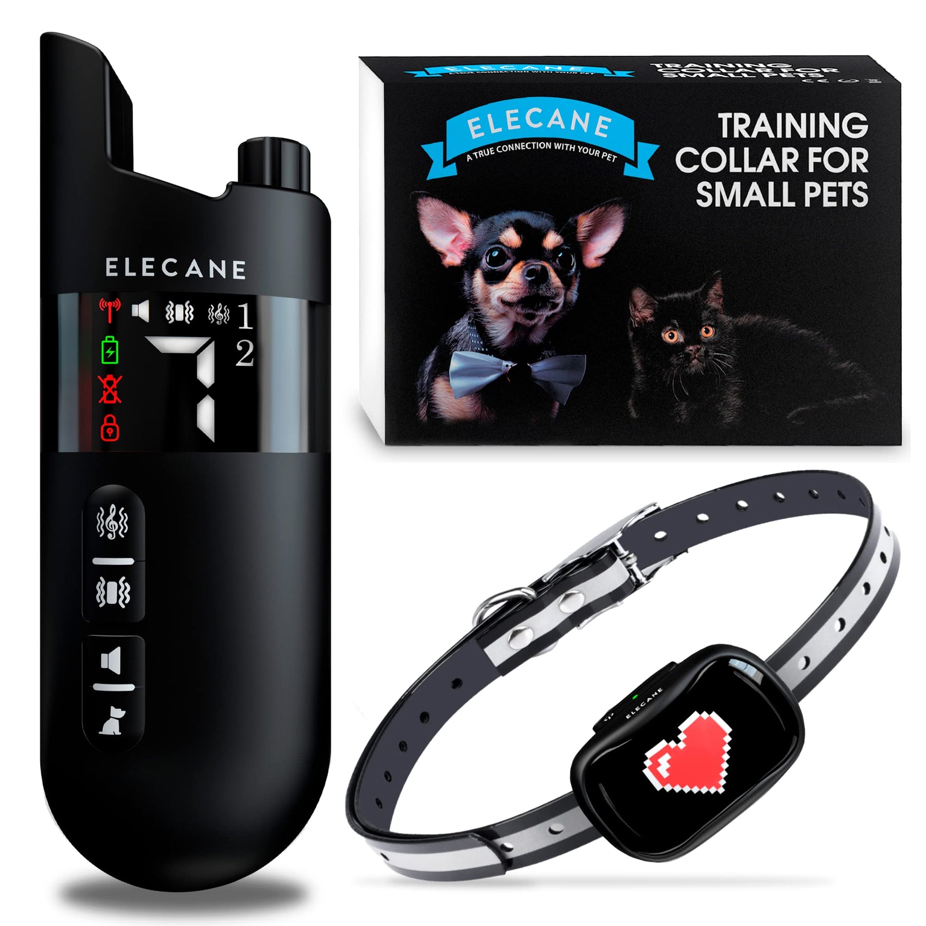 - Original Electronic Training Collars – Mini Training Collar for Small Dogs 5-15lbs - Rechargeable Pet Obedience Trainer with Remote Control - Waterproof, 1000-Foot Range - Beeping Sound & Vibration Mode - 6 to 26-Inch Adjustable Strap by ELECANE
