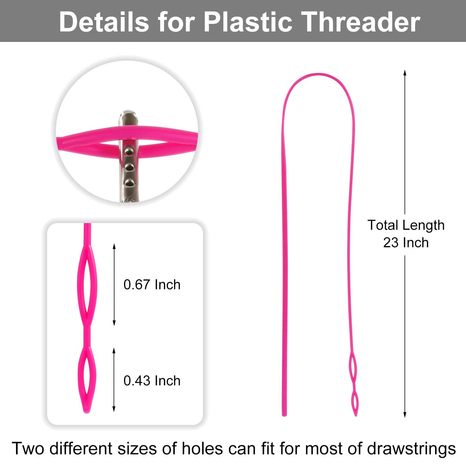 - Comes with Easy ThreadersWhat our consumers like most for this drawstring replacement set is that it Comes with three easy threaders, one is plastic elastic threader (23 long) and two metal threader(2.6 and 3.2 long). which is convenient for you to thread various kinds of strings, no damage to clothes