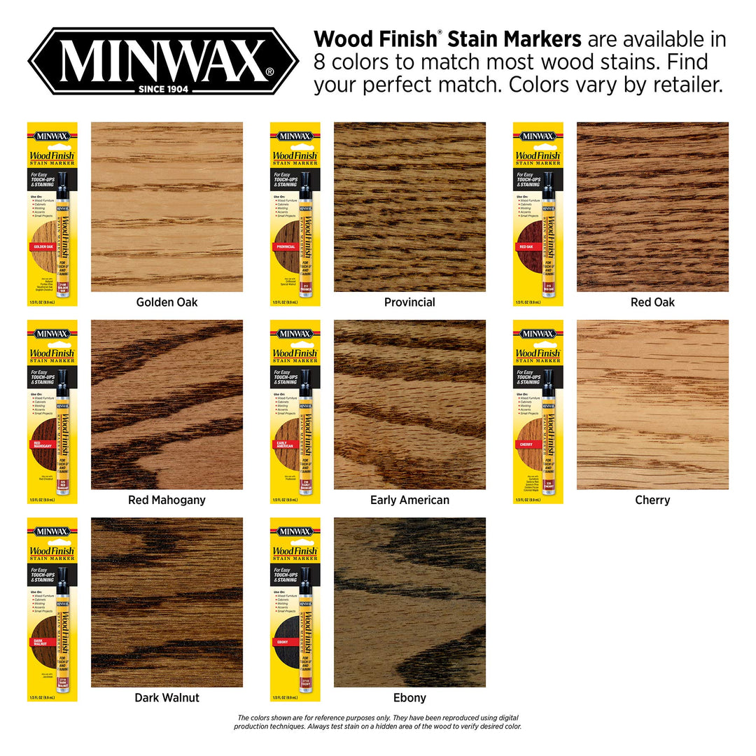 - EASY TOUCH-UP – This Minwax Wood Stain Marker is great for quick and easy touch-ups of common nicks and scratches on wood items. It’s also ideal as a stain pen for small hobby and wood craft projects, or to add decorative touches to larger wood projects.