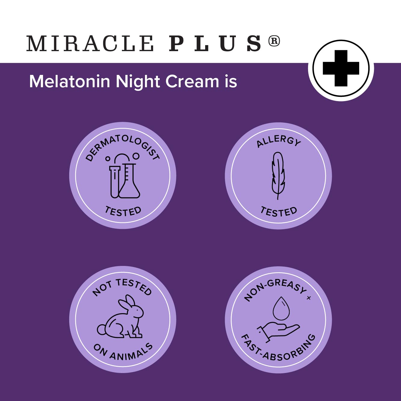 - PROMOTES RELAXATION: Made with natural ingredients like lavender and chamomile, which help promote a good night's sleep. Miracle Plus Melatonin Sleep Night Cream provides moisturization and long lasting softness to the skin. Use it before bedtime or any time you want to unwind and destress.