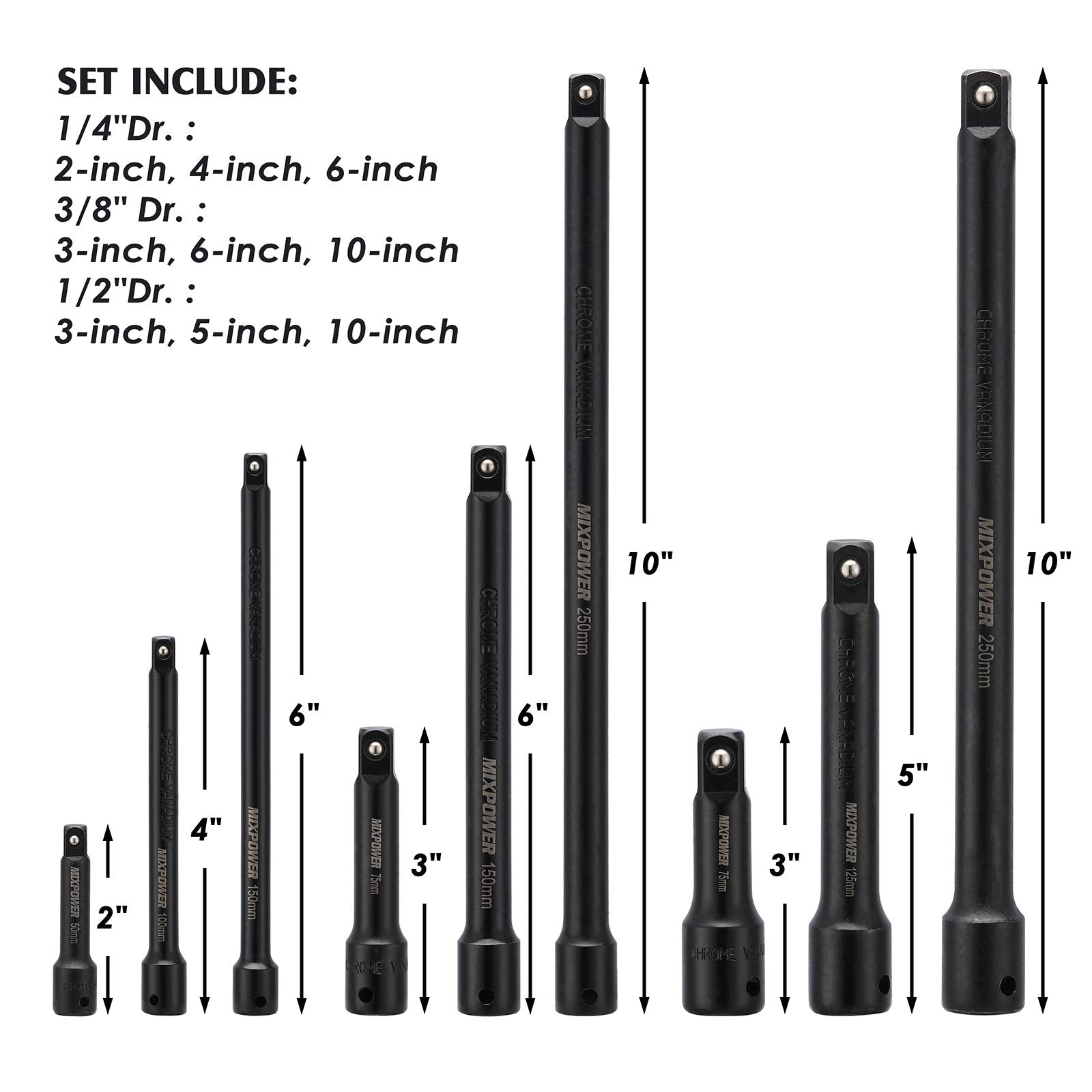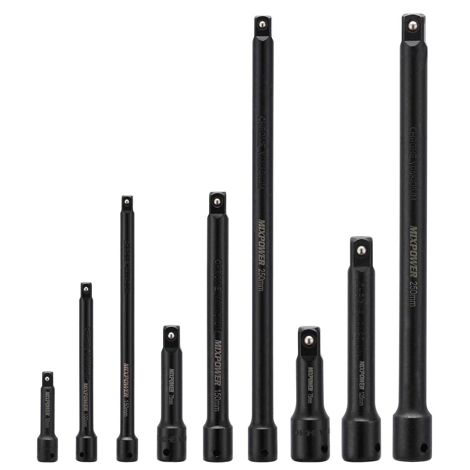 - Original Socket & Socket Wrench Sets – 9-Piece Extension Bar Set, 1/4, 3/8 and 1/2 Drive Socket Extension, Premium Chrome Vanadium Steel with Black Phosphate Finish, Engineered for Impact Drivers by MIXPOWER