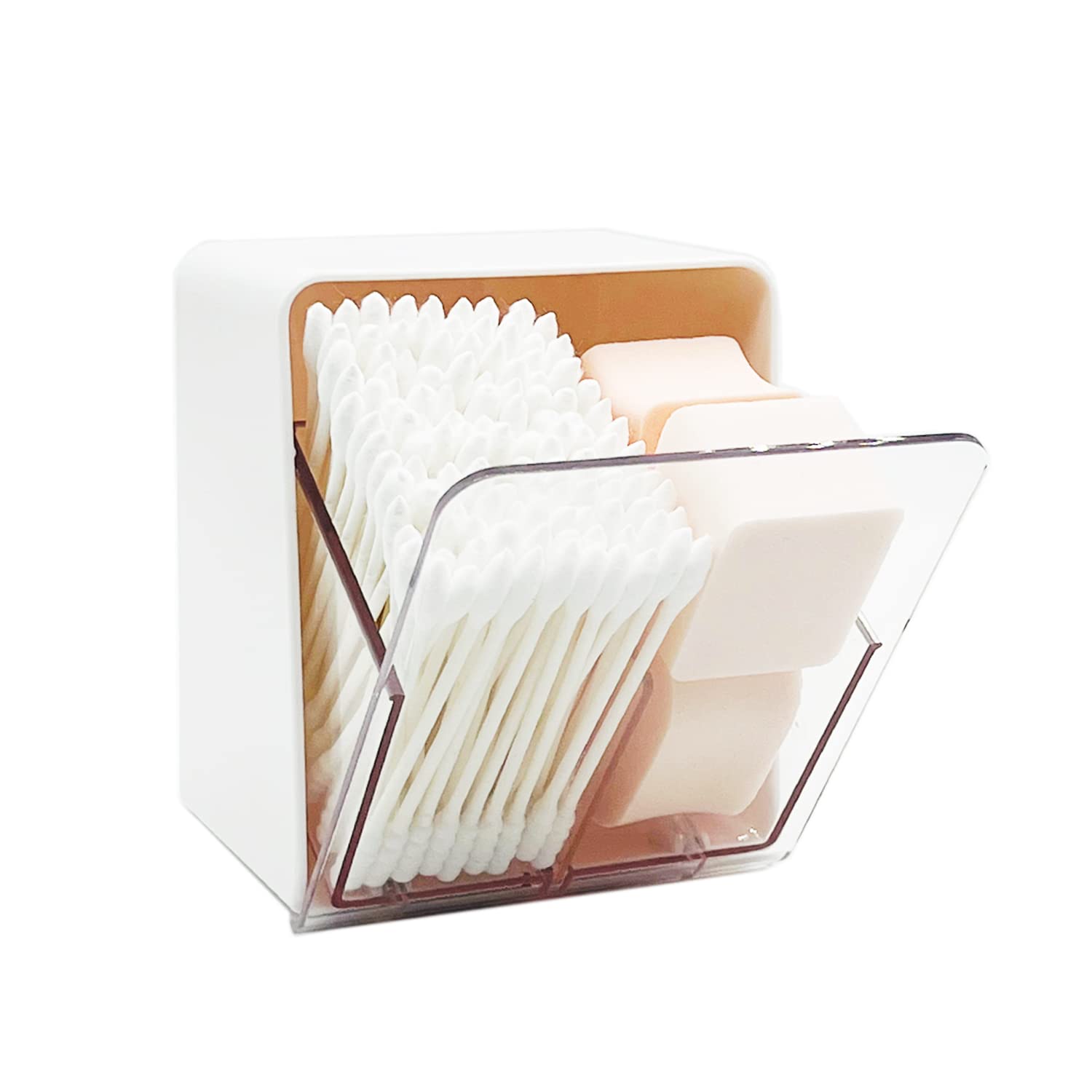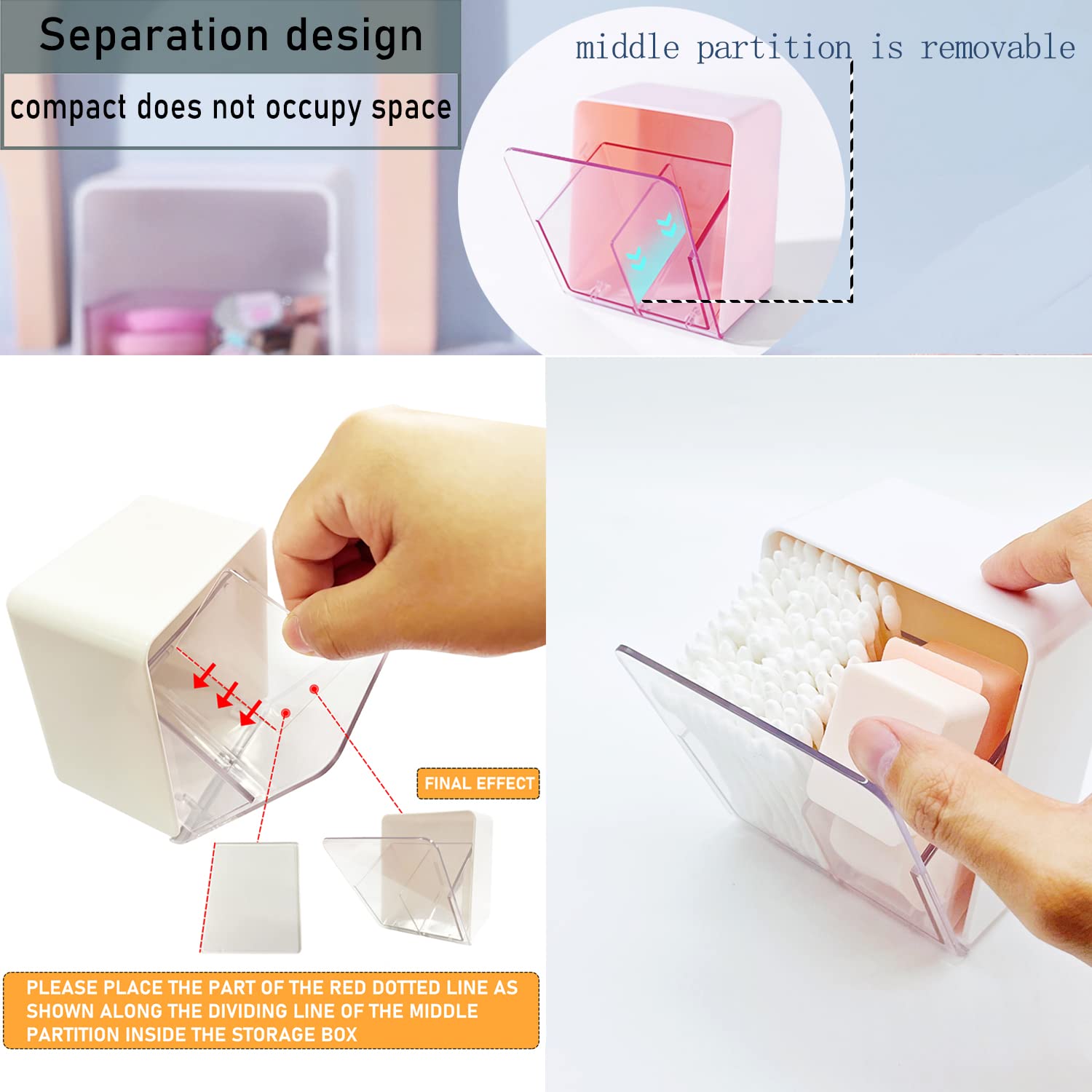 - [LOVELY COTTON PADS HOLDER]: This canister is great for storing and organizing QTips, cotton balls, swabs, ovals, rounds and makeup applicators. This cotton pads holder features a detachable divider to create 2 convenient storage sections. It's convenient and accessible for your daily essential accessories.