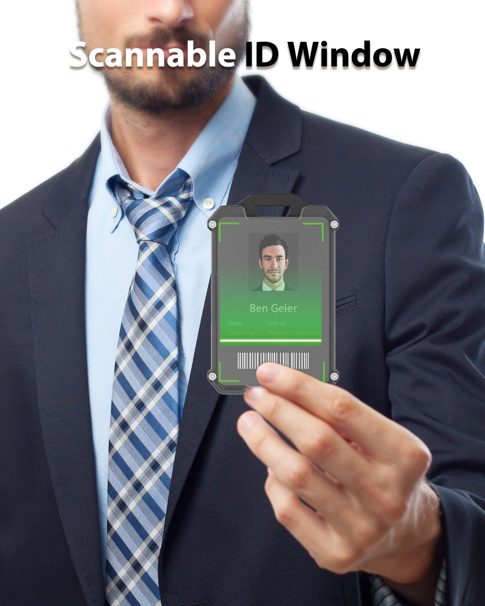- SCANNABLE ID WINDOWThe front cover is transparent, so it is easy to recognize the cards and barcodes, and the card can be read without having to take it out.