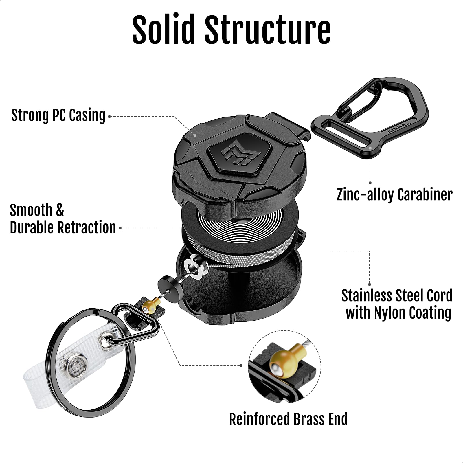 - Original Keyrings & Keychains – Retractable Keychain, Heavy Duty Carabiner Badge Holder, Tactical ID Badge Reel with 31.5” Steel Retractable Cord, 8.0 oz by MNGARISTA