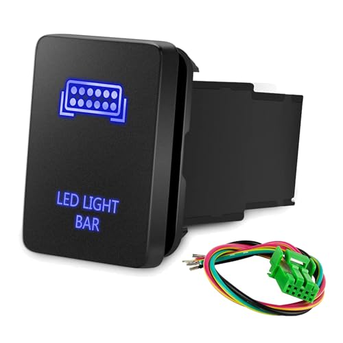 - Original Pushbutton Switches – Push Button Switch 12V with Wiring Kit - Blue LED Light BAR Symbol, Compatible with Toyota Sequoia Highlander Tacoma Tundra 4Runner (Surface Size 1.28 x 0.87 inches) by MNJ Motor