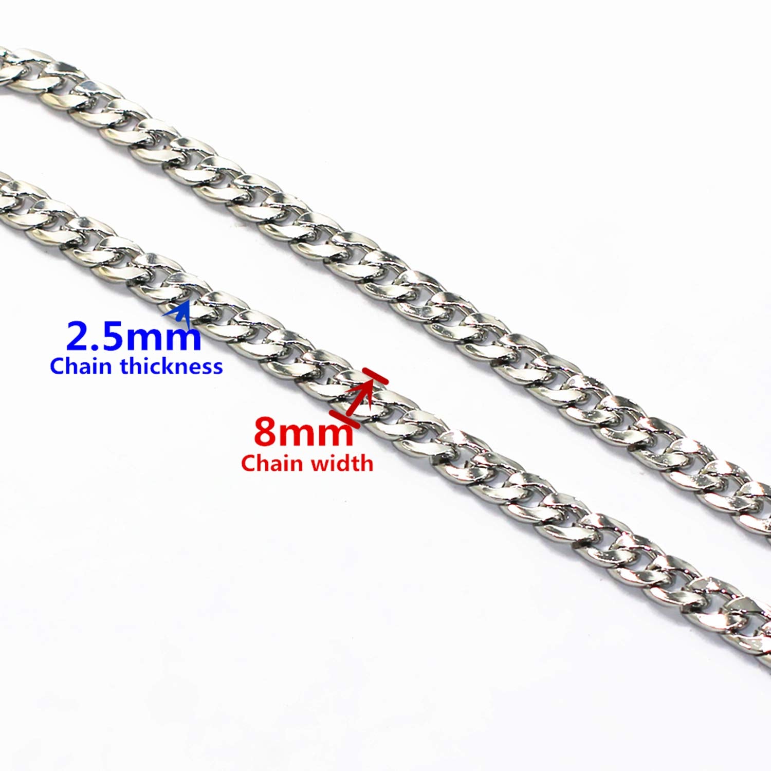 - Size: The width of each chain is the width of each chain is 8mm/0.31,the thickness of the chain is 2.5mm/0.1. High quality metal buckles.Buckle length: 3.3cm(about 1.3); Snaps fit bag rings up to 6mm in thickness or smaller.