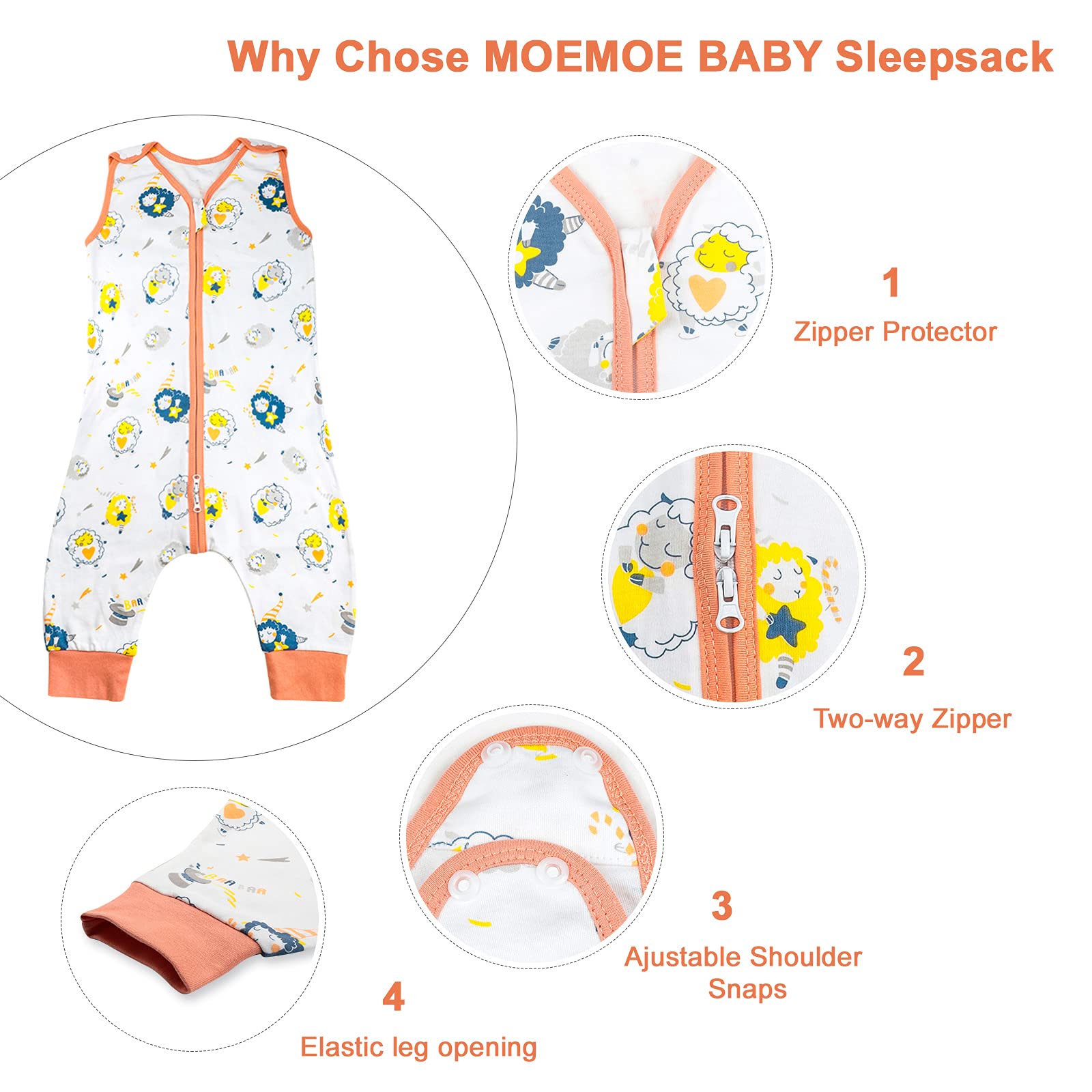 - Ultra-Soft Pure Cotton: Made of 100% cotton, our baby sleep sack with legs is comfortable and breathable to wear. Sleeveless sleep sack keeps warmth while reducing overheat, 0.5 tog perfect for summer. Your baby will enjoy the soft and snug feeling of the 100% cotton while drifting off to dreamland.