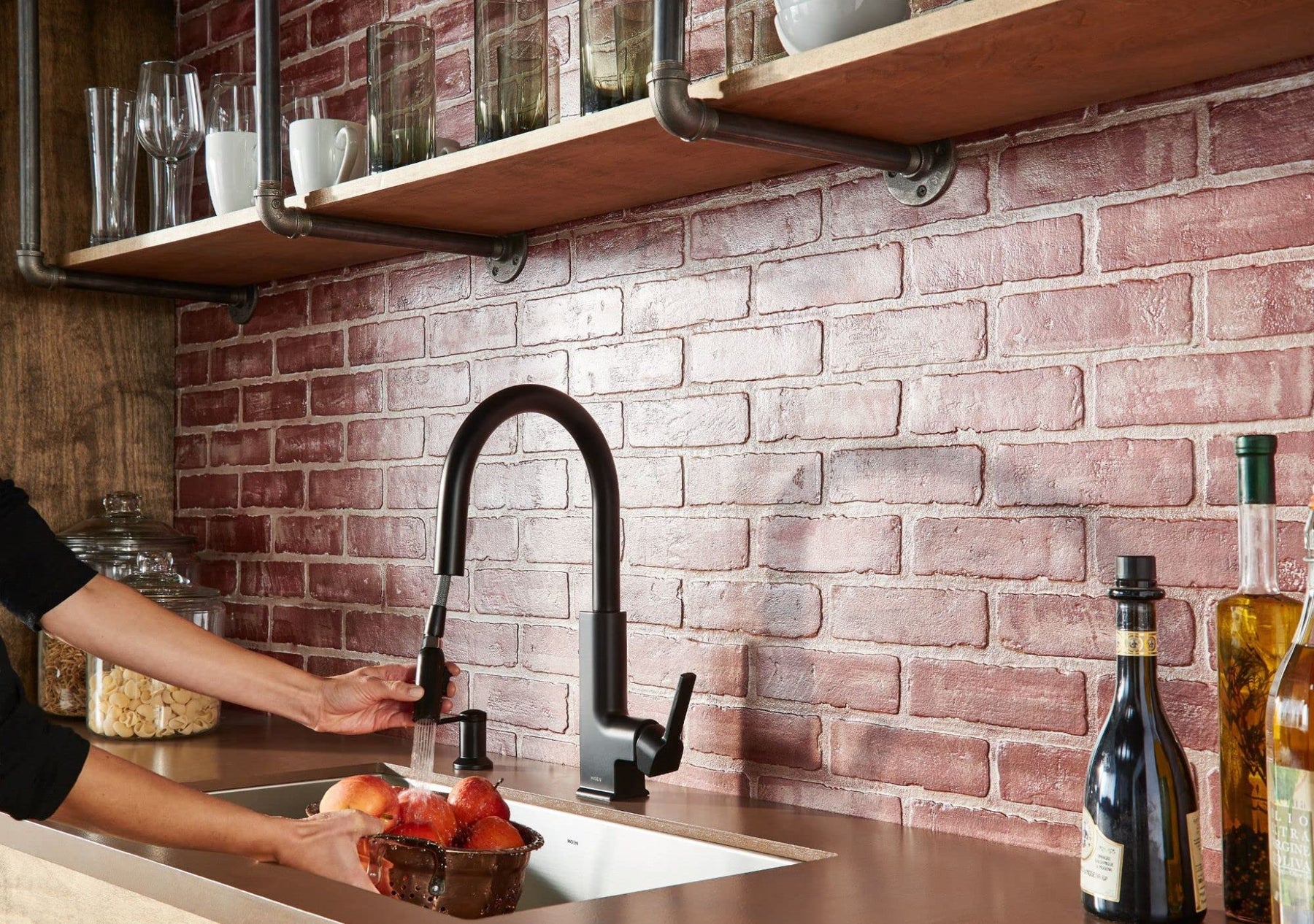 - Original Built In Soap Dispensers – Matte Black Deck Mounted Modern Soap Dispenser for Kitchen Sink with Above the Sink Refillable Bottle, 3942BL by Moen