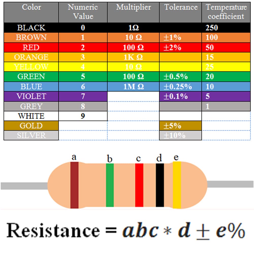 5 color band display: the first to third color bands represent 3 digits, the 4th color band represents the magnification to be multiplied, and the last 5th color band represents the tolerance.