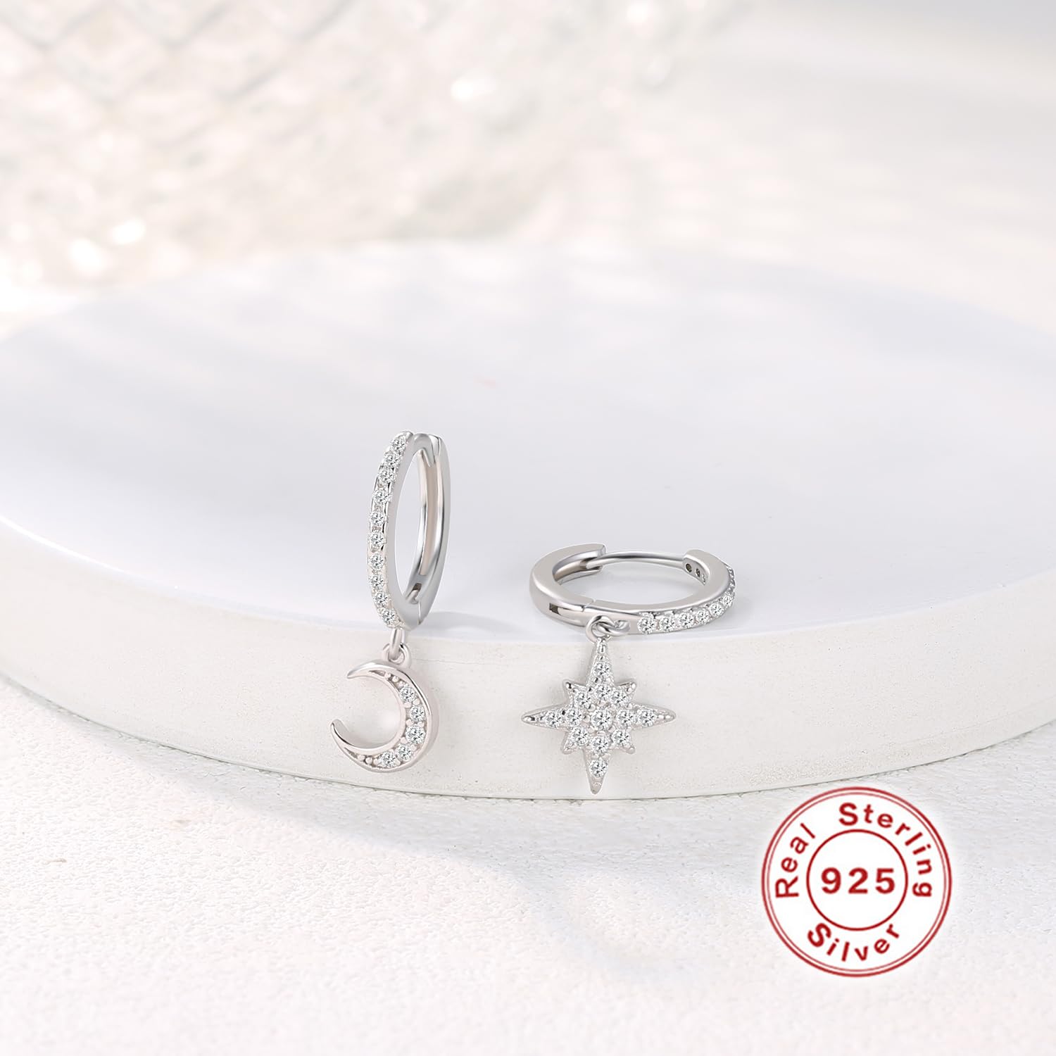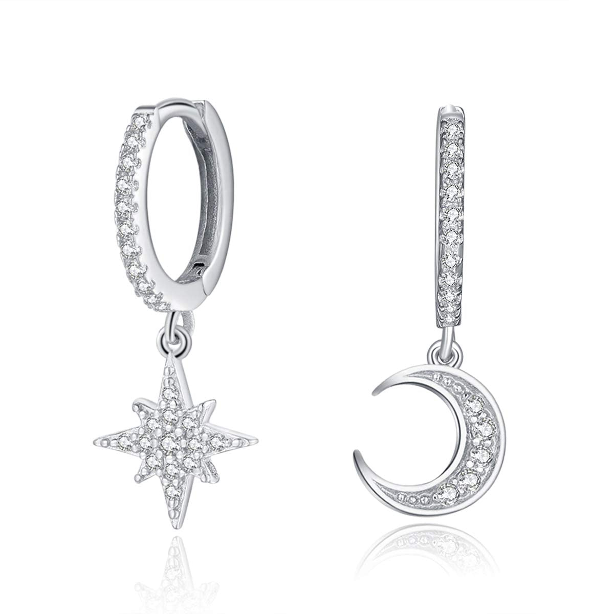 - Original Hoop – Moon Star Hoop Dangle Earrings for Women, Small Huggie Hoop Earring with Cubic Zirconia Charm for Her in Sterling Silver (Silver) by MissNity