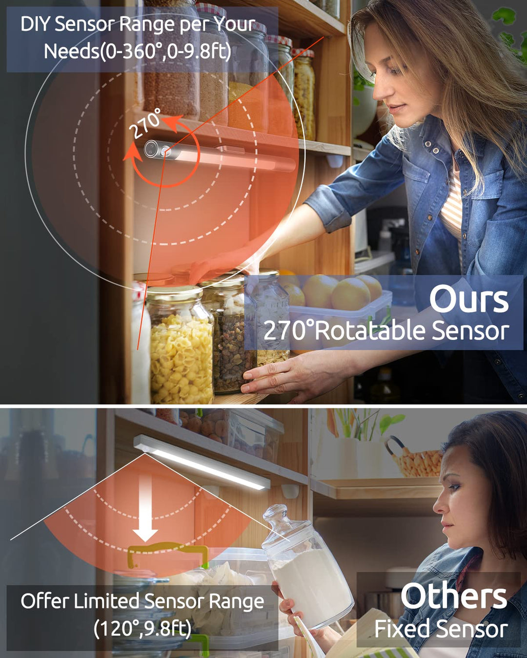 - 2 Sensor ModesOur under cabinet lights have Night Sensor Mode and Day Sensor Mode, when choosing Day Sensor Mode, can disable the light sensor and the light bar will auto turn on no matter at night or daytime after detecting your motion. If choose the Night Sensor Mode, it will auto turn on only at night.