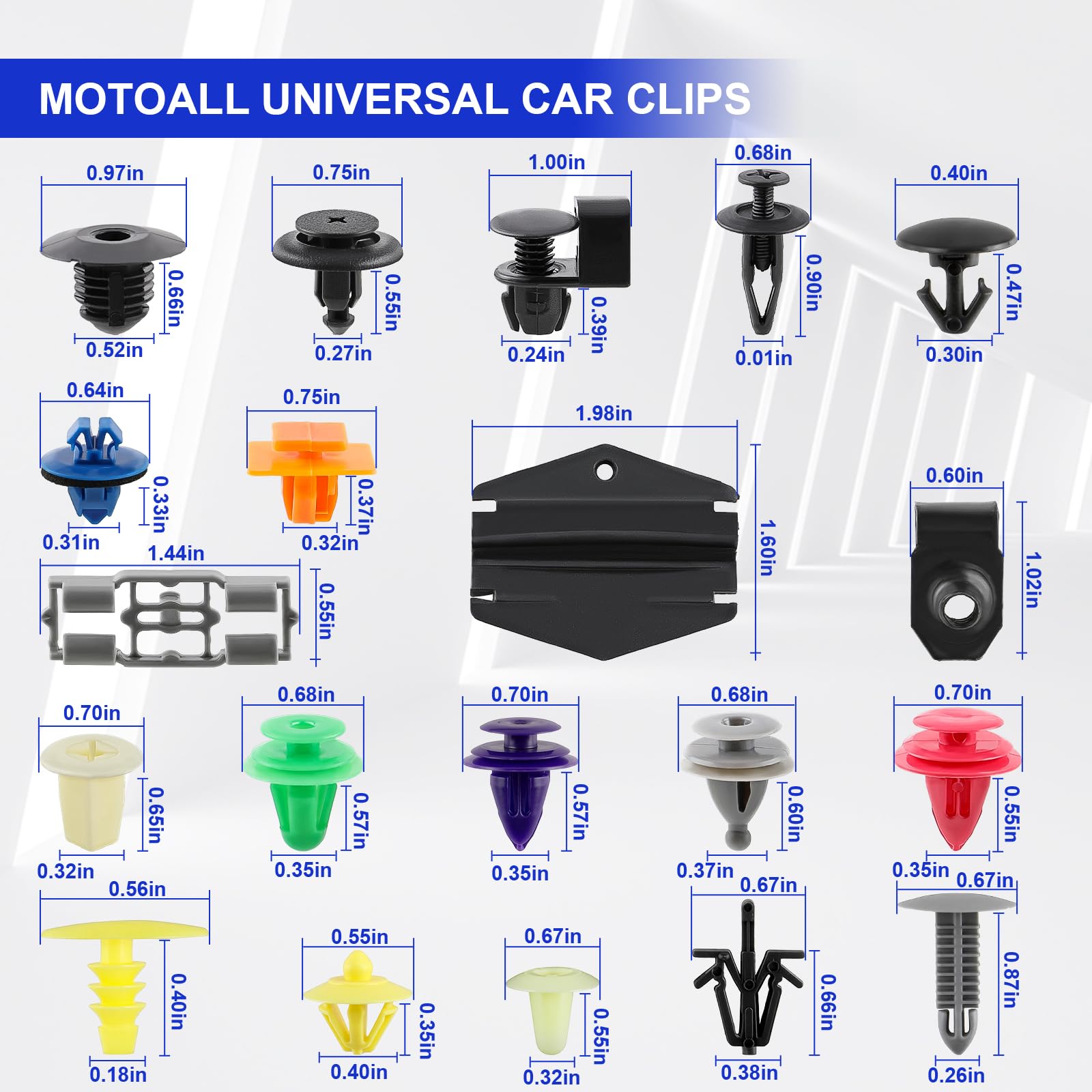 - Original Categories – 500pcs Universal Mixed Auto Car Nylon Bumper Fender Trim Panel Shield Engine Cover Retainer Fastener Rivet Push Clips for GM Ford Chrysler Toyota Lexus Honda Acura Dodge Jeep by MOTOALL