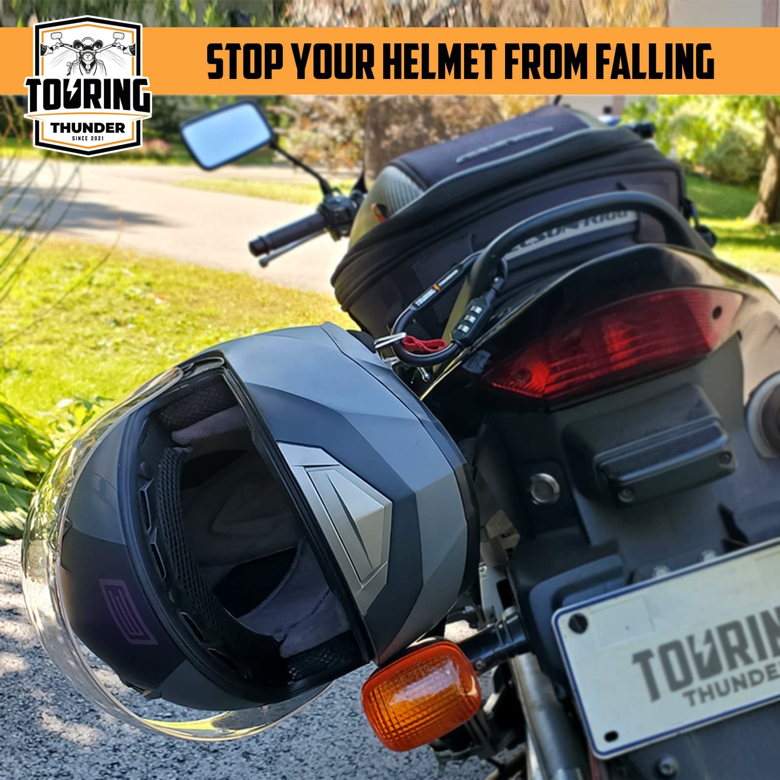 - Original Alarms & Anti-Theft – Motorcycle Helmet Lock - High Security Pin Combination Carabiner Lock for Motorbike - Bright Theft Deterrent Cable - Tough Enough to Secure Virtually Anything by Touring Thunder
