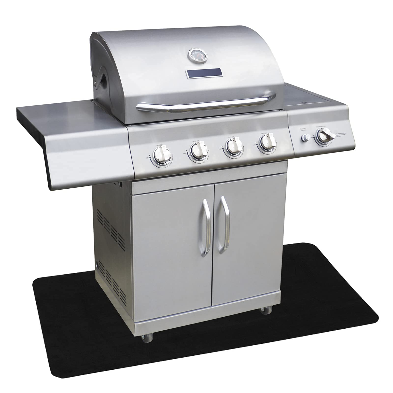 - WATERPROOF - The Deluxe Grill Mat from Mr. Bar-B-Q is completely waterproof. It is designed to be used underneath a gas grill and to live outside through both rain and sun